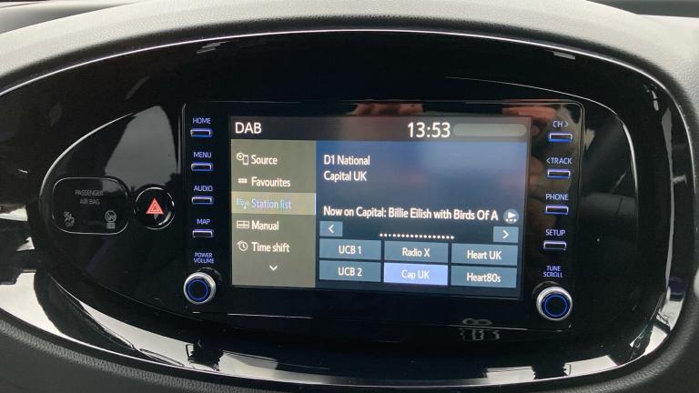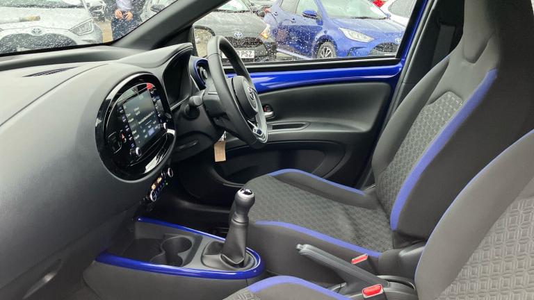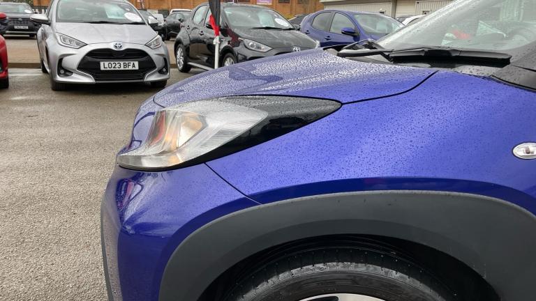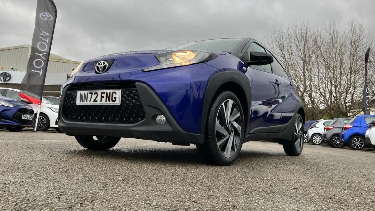 xperience city driving like never before with this stylish Toyota Aygo X 1.0 VVT-i Edge 5dr, finished in the eye-catching Juniper Blue Bi-Tone. Registered on a 72 plate, this compact hatchback combines practicality, efficiency, and modern design, making it perfect for both daily commutes and weekend adventures.Powered by a 1.0-litre VVT-i petrol engine, the Aygo X offers excellent fuel economy without compromising on a smooth, responsive drive. Its compact dimensions make parking in tight city spaces effortless, while the elevated stance and rugged styling give it a confident, crossover-inspired look..Air Conditioning, Alloy Wheels, Bluetooth, Full Service History, Manufacturer Approved, Diamond Cut Alloy Wheels, Auto Lights& Pre Crash Prevention, Floor mats, Privacy glass, Front and rear power windows, Auto wipers, Rain sensor, Rear windscreen defogger, Rear windscreen wiper, Variable intermittent windscreen wipers, Front power windows, Traction control, Hill start assist control (HAC), Anti lock braking system + Electronic brake force distribution, Emergency brake light signal (EBS), Vehicle Stability Control (VSC), Bluetooth connectivity, Smart phone integration with Apple car play/Android Auto, Adaptive cruise control, Lane departure warning system, Traffic sign recognition, Lane tracking assist - LTA, Start and stop, Fatigue monitor, PAS, Electric power steering, Adjustable speed limiter, Driver attention alert system, Voice recognition switch on steering wheel, Multimedia switches on steering wheel, Adjustable speed limiter switch on steering wheel