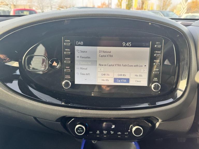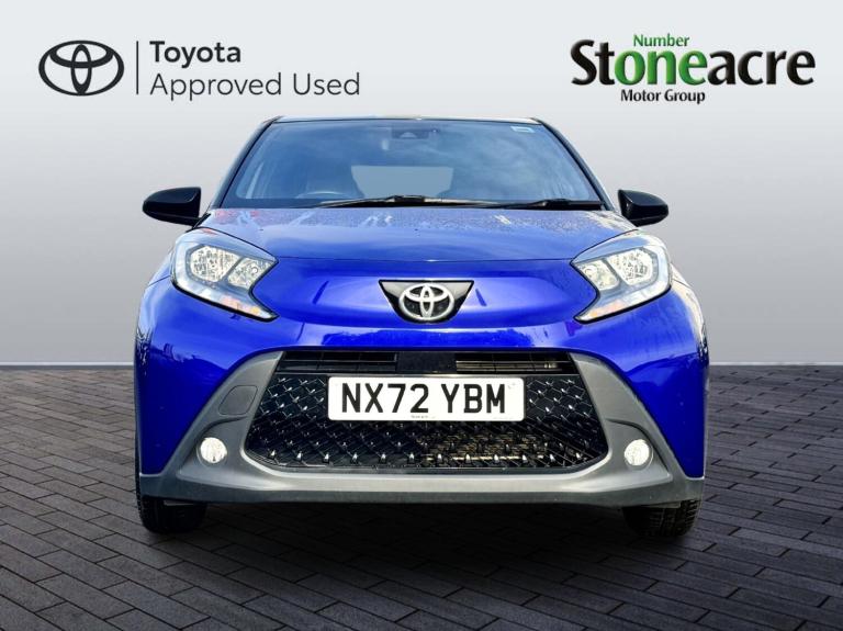 This 2022 Toyota Aygo X VVT-i Edge is a smart choice for those seeking an economical and well equipped city car. Featuring a 1.0L Euro 6 petrol engine, this Edge trim model offers a blend of efficiency and modern technology. You'll appreciate the convenience of automatic headlights and automatic air conditioning, ensuring a comfortable driving experience in various conditions. For added safety and ease on longer journeys, it comes equipped with Toyota Safety Sense, including adaptive cruise control, which can be easily managed via the intelligent adaptive cruise control switch on the steering wheel. Bluetooth connectivity is also included, allowing for seamless integration of your devices.The Toyota Aygo X VVT-i Edge stands out with its impressive fuel economy, achieving a highlight of 59 miles per gallon, which indicates it is more economical than many other similar vehicles. Furthermore, its low insurance group rating suggests lower running costs, making it an attractive option for budget conscious drivers. The vehicle also boasts low CO2 emissions, highlighting its environmentally friendly credentials compared to other cars in its class.