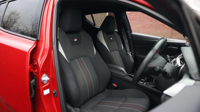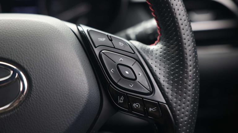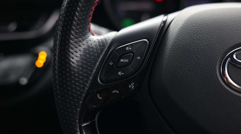.The Toyota C-HR 1.8 Hybrid GR Sport 5dr CVT combines eye-catching design with hybrid efficiency and cutting-edge technology. Its 8'' Touch 2 Go multimedia system with navigation, Bluetooth, Apple CarPlay/Android Auto compatibility, voice recognition, and Wi-Fi connectivity keeps you effortlessly connected, while the 4.2'' TFT multi-information display keeps vital driving info front and centre. Adaptive cruise control, lane departure alert with steering control, road sign assist, and Toyota Safety Sense featuresincluding pre-collision system with pedestrian detectionensure peace of mind on every journey. Inside, the cabin is sporty yet practical, featuring dual-zone climate control, fabric sports seats with leather accents, heated front seats, blue ambient lighting, leather gearshift, and adjustable driver lumbar support. The 60/40 split folding rear seats, Isofix attachments, and clever storage solutions like cupholders, glovebox with internal light, and hard tonneau cover make every trip comfortable and convenient. On the outside, the GR Sport trim adds 19'' black machined alloy wheels, black and body-coloured bumpers, honeycomb front grille, rear spoiler, LED adaptive headlights, LED daytime running lights, and sequential rear indicators, giving the C-HR a bold, athletic stance. With its smooth CVT hybrid powertrain, electric power steering, adaptive front light system, and advanced safety technology, the C-HR GR Sport delivers a confident, efficient, and stylish driving experience ideal for city streets and open roads alike..4.2'' coloured TFT screen for multi-information display, Adaptive cruise control, Bluetooth connectivity, E-call, Electric power steering, Hybrid system indicator, Lane departure alert with steering control, Remote boot door release in cabin, Remote boot door release in key, Reversing camera, Road sign assist - RSA, Simple Intelligent parking assist, Touch 2 Go navigation system, Trip computer, Voice recognition, Vehicle Stability Control (VSC), 6 speakers, AM/FM radio, DAB Radio (Digital Audio Broadcasting), Toyota touch 2 multimedia system with 8'' display, USB connector, Wi-fi connectivity, Adaptive front light system, Adaptive LED Headlights, Anti-jam protection on power windows, Auto high beam, Auto up and down function on all power windows, Automatic headlight levelling, Automatic headlights, Automatic headlights cut-off, Black and body coloured rear bumper, Black upper front grille, Body colour door handles, Body colour