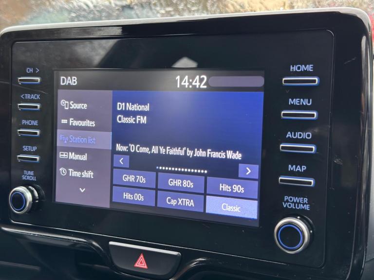 This 2022 Toyota Yaris VVT-h Icon boasts exceptionally low mileage for its age, having covered just 11117 miles, and has had only one owner from new. It features a 1.5L Petrol Hybrid Engine, meeting the Euro 6 emission class, and benefits from an MOT valid until June 2026. The last service was completed on 12th April 2025 at 10194 miles, ensuring excellent provenance. Notable features include Toyota Safety Sense 2 with Adaptive Cruise Control, automatic headlights, Bluetooth connectivity, a reversing camera for parking assistance, and smartphone integration with Apple CarPlay and Android Auto.This Yaris Icon stands out with its impressive fuel economy, achieving a remarkable 69 mpg, which highlights its efficiency compared to other vehicles in its class. Furthermore, its low insurance group and low CO2 emissions indicate that running costs are kept to a minimum, making it a very economical choice for everyday driving.