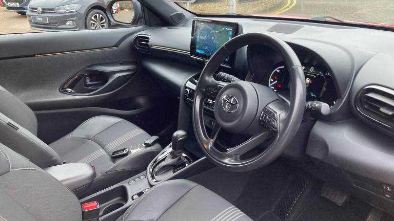 The Toyota Yaris Cross 1.5 Hybrid Dynamic combines compact SUV practicality with Toyota’s renowned hybrid efficiency. Its elevated stance, sculpted lines, and confident front grille give it a modern, urban-ready presence, while its estate-like proportions provide a surprising amount of space and versatility for a vehicle of its size.Step inside, and the cabin feels thoughtfully designed with a focus on comfort, technology, and convenience. The Dynamic trim adds premium touches, including a clear touchscreen infotainment system with Apple CarPlay and Android Auto, comfortable seats, and a well-laid-out dashboard that keeps every control intuitive and accessible. Passengers benefit from generous headroom and legroom, while the boot provides ample space for shopping, luggage, or weekend gear, making the Yaris Cross perfectly suited to family life or daily errands.Under the bonnet, the 1.5-litre hybrid powertrain delivers a smooth, responsive drive. Electric power dominates at lower speeds for quiet, efficient city travel, while the petrol engine seamlessly assists for extra performance when needed. The CVT automatic transmission ensures effortless acceleration, while the suspension offers a composed and comfortable ride, absorbing bumps with confidence.Safety is comprehensive with Toyota’s suite of advanced features, including lane-keeping assist, adaptive cruise control, pre-collision systems, and traffic sign recognition, giving peace of mind on every journey.Practical, stylish, and impressively efficient, the Toyota Yaris Cross Hybrid Dynamic 5dr CVT is a modern, versatile compact SUV that blends everyday usability with cutting-edge hybrid technology, making every drive relaxed, comfortable, and economical..Air Conditioning, Climate Control, Metallic Paint, Cruise Control, Satellite Navigation, Alloy Wheels, Heated Seats, DAB Radio, Bluetooth, Parking Sensors, Full Service History, USB, Diamond Cut Alloy Wheels, Adaptive cruise, Keyless Entry-Push Button Start, Apple-Android Play, Rear Camera, Auto Lights, Electric Folding Mirrors, Lane Departure, Lane Keeping Assist, Pre Crash Prevention& Rain Sensors, Privacy glass, Acoustic windscreen glass, Auto windscreen wipers, Front auto power windows with anti jam protection, Rear auto power windows with anti jam protection, Front and rear electric windows with auto up/down function, Rain sensor, Rear wiper, Traction control, ABS+EBD+Brake assist, Electronic parking brake, Emergency brake light system (EBS), Vehicle Stability Control (VSC), Bluetooth connectivity, Electric power steering, Reversing camera, Driver attention alert system, Lane trace assist, Full range intelligent adaptive cruise control, eCall emergency system