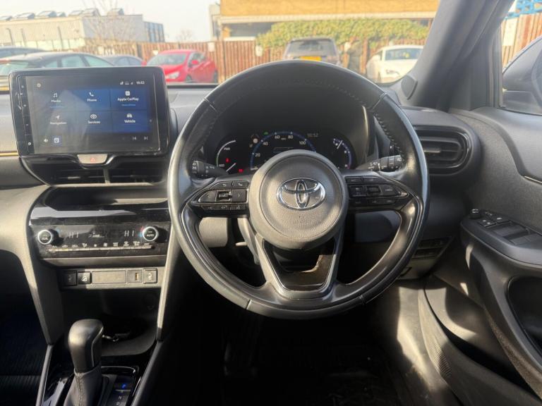 This 2022 Toyota Yaris Cross VVT-h Dynamic is a superb example, having been owned by just one careful keeper. This stylish compact SUV features a responsive 1.5L petrol hybrid engine paired with an efficient four wheel drive system, making it a capable and economical choice. The Dynamic trim level ensures you benefit from a host of convenient features, including a reversing camera with parking assistance, smart entry with push button start for effortless access, and a comprehensive tech pack that brings Android Auto and Apple CarPlay to your fingertips. Stay connected and comfortable with Bluetooth connectivity and dual zone automatic air conditioning. The Toyota Yaris Cross VVT-h Dynamic stands out with its impressive fuel economy, achieving a remarkable 55 miles per gallon, which indicates it is more economical than many similar vehicles. Furthermore, its Euro 6 emission class and low CO2 emissions highlight its environmental consideration. This model also benefits from a low insurance group, suggesting that running costs will be kept to a minimum, making it an even more attractive proposition for everyday driving. 2 keys, 6 months warranty Features Include: , adventure pack, 18in alloy wheels - 5-triple-spoke - dark grey, 3-spoke leather steering wheel, 40-20-40 split-folding 2nd row rear seats, 7in multi-information display screen, airbags - driver, airbags - front passenger, airbags - front side, anti lock braking system - abs with electronic brake-force distribution - ebd, audio - multimedia -telephone and voice switches on steering wheel, automatic high beam, automatically retractable door mirrors, bas - brake assist system, bi-tone black roof, black roof lining, blue ambient lighting on front doors, bluetooth connectivity, boot 12v power outlet, dab digital radio, dark chrome insert on upper front grille, door handles - body coloured, driver attention alert, driver and passenger central airbag, drivers glove box, dual-zone automatic air conditioning, ebs - emergency brake signal, electrochromatic auto-dimming rear view mirror, electronic parking brake, essential protection pack, follow me home headlights, front 12v power outlet, front console box, front cup holders, front led light guide, front and rear power windows with auto up-down, gloss black upper front grille, headlights - automatic on, heated driver and front passenger seat, hooks for luggage holding belt, intelligent adaptive cruise control, led daytime running lights with led light