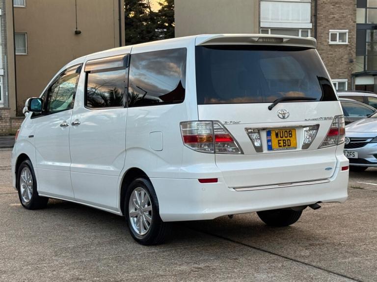 TOYOTA ALPHARD E FOUR PETROL HYBRID 2.4L AUTO, 7 SEATER, 5DR, ULEZ, VERIFIED MILEAGE, FINANCE AVAILABLE New MOT, All Major Cards Accepted, P/X Welcome, 1/2/3 years Warranty available (optional), All cars are pdi checked i.e serviced and valet before delivery. Alloys , 7 seater very spacious, electric folding mirrors, electric windows, air con, key less entry/key less start and a lot more, get in touch for more details. Visit our web site for more detailed pictures and stock at : [Website URL removed] CALL US AT : Off: 01708 553 354 Mob / Whats app : 07483 124315. 12v Socket,3 Months Comprehensive Warranty,7 Seats,Adjustable Steering Column,Adjustable Steering Wheel,Air Conditioning,Alloy Wheels,APPLE PLAY / CAR PLAY (OPTIONAL),Auto On Headlights,Central Locking,Cruise Control,Cupholders,Drive and Run very well,Drivers Electric Window,Electric Door Mirrors,Electric Mirrors,Electric Seat Adjustment,Electric Windows,Electronic Stability Programme (ESP),Excellent Condition,Fresh Import,Front & Rear Electric Windows,Front Armrest,Front Electric Windows,Front Fog Lights,Front FogLamps,Full Leather Seats,Height Adjustable Drivers Seat,Inroof Screen / DVD (Optional),Front Parking Sensor,ISOFIX,Keyless Central Locking,Leather Steering Wheel,LED Headlights,Low Emissions,Low Road TAX,Mileage Verified,New MOT,Part exchange welcome,Power Assisted Steering (PAS),Power Door,Rear Air Conditioning,Rear Centre Arm Rest,Rear Parking Camera,Rear Parking Sensor,Rear Spoiler With Brake Light,Reversing Camera & DVD (Optional),Standard Immobiliser,Steering Column - Adjustable,Tinted Glass,Traction Control,UK Navigation / DVD (Optional),ULEZ,USB and AUX,Vehicle Stability Control
