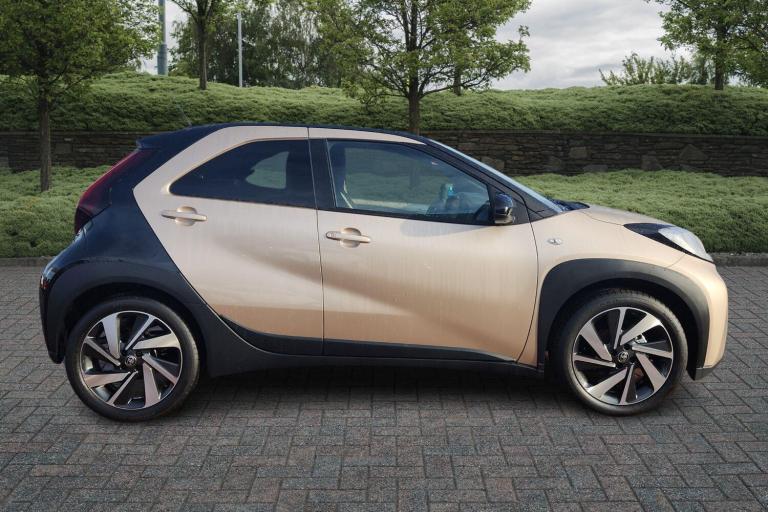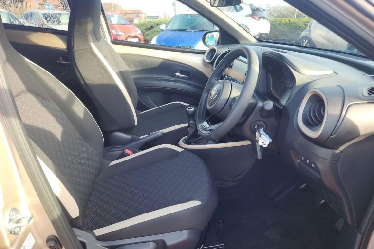 Available from 21/10/2025. Toyota Aygo X Hatchback 1.0 VVT-i Edge 5dr in Beige. Specification Includes 18in Alloy Wheels - 4-Double-Spoke - Bi-Tone Dark Grey - Machined-Face, 3-Spoke Leather Steering Wheel, 4.2in Colour Multi-Information Display Screen, 8in Toyota Touch Multimedia System, ABS - Anti Lock Braking System with Emergency Brake-Light System - EBS, Adjustable Speed Limiter -ASL- Switch on Steering Wheel, Analogue Speedometer, Audio Switches on Steering Wheel, Auto Headlights, Auto Wipers, Automatic Air Conditioning, Automatic Headlight Cut-Off, Black Door Moulding, Black Insert on Steering Wheel, Black Wheel Arch Moulding, Bluetooth Connectivity, Boot Door Scuff Plate, Centre Room Light, Child Safety Door Locks, Chrome Interior Door Handles, Chrome Surround on Air Conditioning Button, Clean Air Filter, DAB Digital Radio, Digital Tachometer, Door Handles - Body Coloured, Door Mirrors - Gloss Black, Electric Power Steering - EPS, Floor Mats, Follow Me Home Headlights, Front 12V Power Outlet, Front Bumper - Body Coloured, Front Fog Lights, Front LED Light Guide, Front Passenger Airbag On-Off Switch, Front Power Windows, Front Seat Belt Reminder, Gloss Black Upper Front Grille, HAC - Hill Start Assist Control, Headlight Cut-Off Reminder, Headlights - Halogen, Headrests - Front - Deco Art, ISOFIX Child Restraint System - 2x Rear, Intelligent Adaptive Cruise Control Switch on Steering Wheel, Key Reminder Warning, Lane Departure Alert with Switches on Steering Wheel, Manual Headlight Levelling, Manual Tilt Steering Wheel, Manually Reclining Driver and Passenger Seat, Manually Sliding Driver and Passenger Seat, Multi-Info Switches on Steering Wheel, Pollen Air Filter, Power Back Door, Power-Adjustable - Electric - Heated Door Mirrors, Pre-Collision System with Emergency Steering Assist, Privacy Glass - Rear Side Windows, Rear Headrests x2, Rear Seat Belt Reminder, Rear Window Defogger - De-Icer, Rear Window Wiper, Remote Power Door Locks, Reversing Camera, Roof - Head Lining Adhesive Head Lining, Seats - 50-50 Split Folding Rear, Seats - Drivers Height Adjustment, Short Antenna, Smartphone Integration - Apple Car Play and Android Auto, Speakers x4, Speed Limiter Information, Storage - Rear Door Pockets, Supplemental Restraint System - SRS - Airbags - 6 Airbags, Telephone Switches on Steering Wheel, Toyota Safety Sense, Traction Control - TRC, Tyre Pressure Warning System, Tyre Repair Kit, USB Connector, VSC - Vehicle Stability Control, Vanity Mirror on