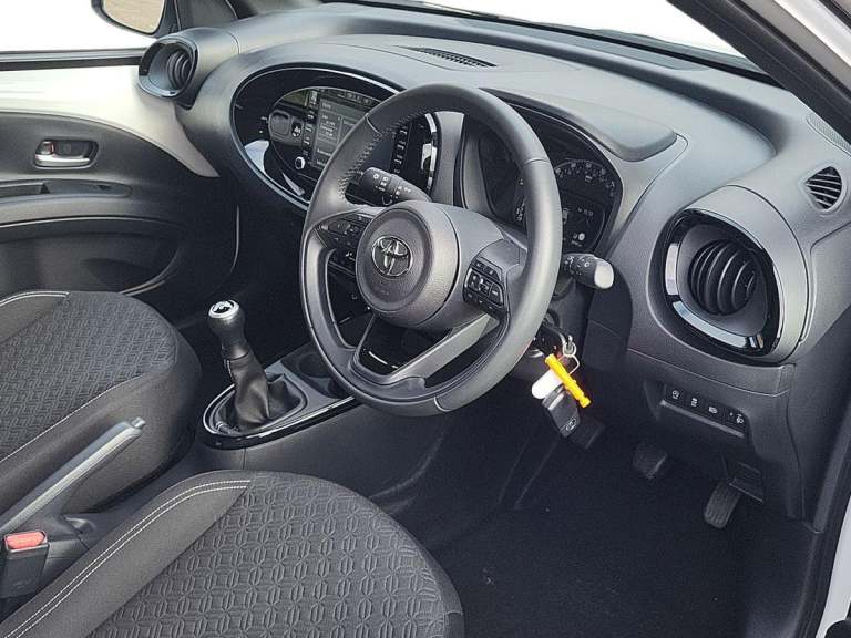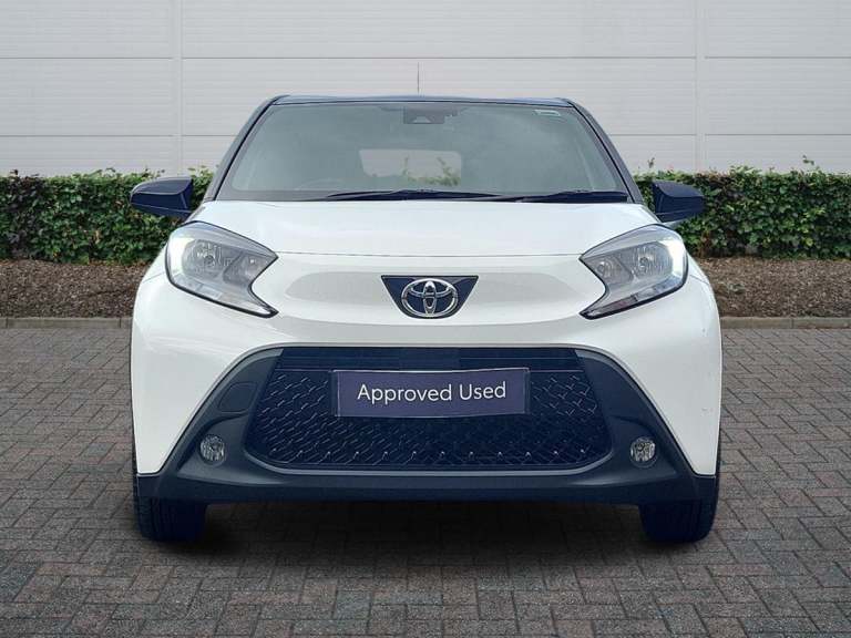 Available from 30/03/2026. Toyota Aygo X Hatchback 1.0 VVT-i Edge 5dr in White. Specification Includes 18in Alloy Wheels - 4-Double-Spoke - Bi-Tone Dark Grey - Machined-Face, 3-Spoke Leather Steering Wheel, 4.2in Colour Multi-Information Display Screen, 8in Toyota Touch Multimedia System, ABS - Anti Lock Braking System with Emergency Brake-Light System - EBS, Adjustable Speed Limiter -ASL- Switch on Steering Wheel, Analogue Speedometer, Audio Switches on Steering Wheel, Auto Headlights, Auto Wipers, Automatic Air Conditioning, Automatic Headlight Cut-Off, Black Door Moulding, Black Insert on Steering Wheel, Black Wheel Arch Moulding, Bluetooth Connectivity, Boot Door Scuff Plate, Centre Room Light, Child Safety Door Locks, Chrome Interior Door Handles, Chrome Surround on Air Conditioning Button, Clean Air Filter, DAB Digital Radio, Digital Tachometer, Door Handles - Body Coloured, Door Mirrors - Gloss Black, Electric Power Steering - EPS, Floor Mats, Follow Me Home Headlights, Front 12V Power Outlet, Front Bumper - Body Coloured, Front Fog Lights, Front LED Light Guide, Front Passenger Airbag On-Off Switch, Front Power Windows, Front Seat Belt Reminder, Gloss Black Upper Front Grille, HAC - Hill Start Assist Control, Headlight Cut-Off Reminder, Headlights - Halogen, Headrests - Front - Deco Art, ISOFIX Child Restraint System - 2x Rear, Intelligent Adaptive Cruise Control Switch on Steering Wheel, Key Reminder Warning, Lane Departure Alert with Switches on Steering Wheel, Manual Headlight Levelling, Manual Tilt Steering Wheel, Manually Reclining Driver and Passenger Seat, Manually Sliding Driver and Passenger Seat, Multi-Info Switches on Steering Wheel, Pollen Air Filter, Power Back Door, Power-Adjustable - Electric - Heated Door Mirrors, Pre-Collision System with Emergency Steering Assist, Privacy Glass - Rear Side Windows, Rear Headrests x2, Rear Seat Belt Reminder, Rear Window Defogger - De-Icer, Rear Window Wiper, Remote Power Door Locks, Reversing Camera, Roof - Head Lining Adhesive Head Lining, Seats - 50-50 Split Folding Rear, Seats - Drivers Height Adjustment, Short Antenna, Smartphone Integration - Apple Car Play and Android Auto, Speakers x4, Speed Limiter Information, Storage - Rear Door Pockets, Supplemental Restraint System - SRS - Airbags - 6 Airbags, Telephone Switches on Steering Wheel, Toyota Safety Sense, Traction Control - TRC, Tyre Pressure Warning System, Tyre Repair Kit, USB Connector, VSC - Vehicle Stability Control, Vanity Mirror on