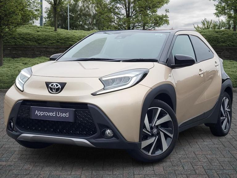 Available from 14/10/2025. Toyota Aygo X Hatchback 1.0 VVT-i Exclusive 5dr in Beige. Specification Includes 18in Alloy Wheels - 4-Double-Spoke - Bi-Tone Dark Grey - Machined-Face, 3-Spoke Leather Steering Wheel, 4.2in Colour Multi-Information Display Screen, 9in HD Toyota Smart Connect Multimedia System, ABS - Anti Lock Braking System with Emergency Brake-Light System - EBS, Adjustable Speed Limiter -ASL- Switch on Steering Wheel, Analogue Speedometer, Audio Switches on Steering Wheel, Auto Headlights, Auto Wipers, Automatic Air Conditioning, Automatic Headlight Cut-Off, Automatic High Beam On-Off Switch, Black Door Moulding, Black Surround on Front Fog Lights, Black Wheel Arch Moulding, Bluetooth Connectivity, Body Coloured Insert on Steering Wheel, Boot Door Scuff Plate, Centre Room Light, Child Safety Door Locks, Chrome Interior Door Handles, Chrome Surround on Air Conditioning Button, Clean Air Filter, Connected Navigation, DAB Digital Radio, Digital Tachometer, Door Handles - Body Coloured, Door Mirrors - Gloss Black, Electric Power Steering - EPS, Floor Mats, Follow Me Home Headlights, Front 12V Power Outlet, Front Bumper - Body Coloured, Front Fog Lights, Front LED Light Guide, Front Passenger Airbag On-Off Switch, Front Power Windows, Front Seat Belt Reminder, Gloss Black Upper Front Grille, HAC - Hill Start Assist Control, Headlight Cut-Off Reminder, Headrests - Front - Deco Art, ISOFIX Child Restraint System - 2x Rear, Intelligent Adaptive Cruise Control Switch on Steering Wheel, Key Reminder Warning, LED Daytime Running Lights with LED Light Guide, LED Headlamps, Lane Departure Alert with Switches on Steering Wheel, Light Blue Ambient Lighting in Centre Console, Manual Headlight Levelling, Manual Tilt Steering Wheel, Manually Reclining Driver and Passenger Seat, Manually Sliding Driver and Passenger Seat, Multi-Info Switches on Steering Wheel, Parking Pack, Pollen Air Filter, Power Back Door, Power-Adjustable - Electric - Heated Door Mirrors, Pre-Collision System with Emergency Steering Assist, Privacy Glass - Rear Side Windows, Rear Headrests x2, Rear Seat Belt Reminder, Rear Window Defogger - De-Icer, Rear Window Wiper, Remote Power Door Locks, Reversing Camera, Roof - Head Lining Adhesive Head Lining, Seats - 50-50 Split Folding Rear, Seats - Drivers Height Adjustment, Short Antenna, Smart Entry and Start, Smartphone Remote Hazard Lights, Speakers x5, Speed Limiter Information, Storage - Rear Door Pockets, Supplemental Restraint System - SRS