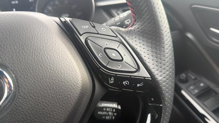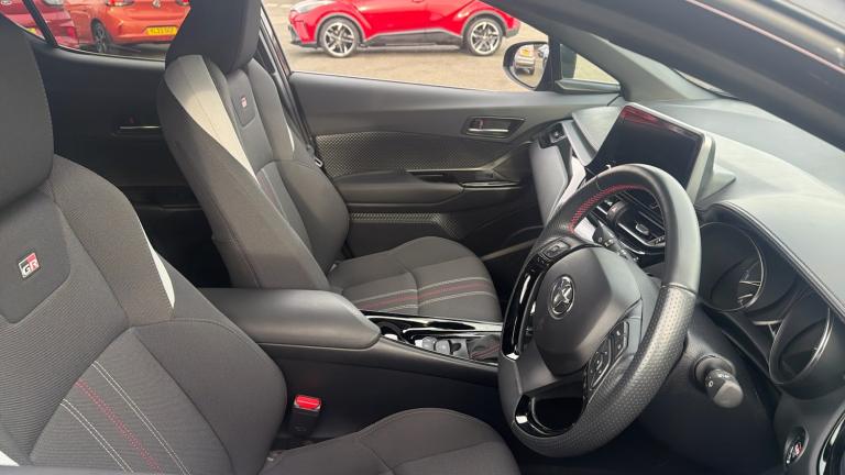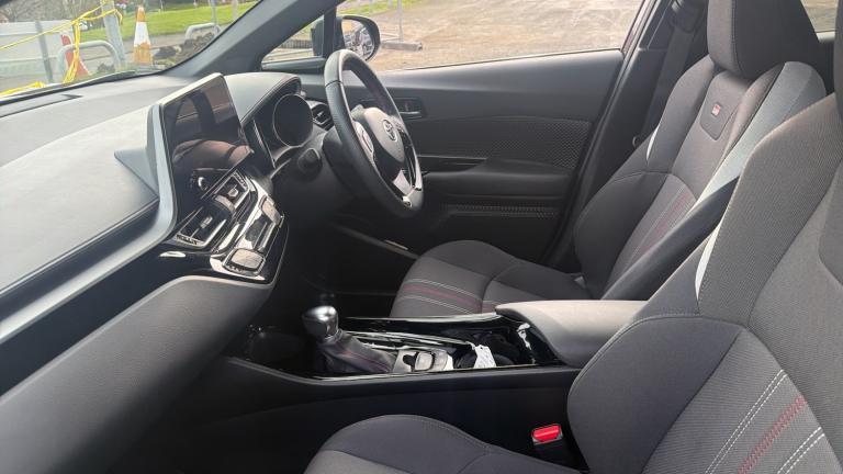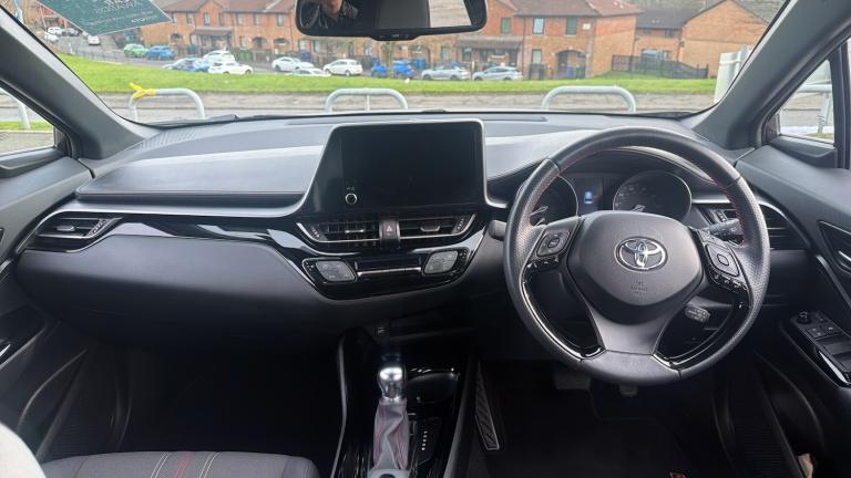 This 2023 Toyota C-HR VVT-h GR SPORT is a superb example, having had only one owner since new. This stylish GR SPORT trim model boasts a 1.8 litre petrol hybrid engine, meeting Euro 6 emissions standards. Inside, you'll find comfort and convenience with Dual Zone Automatic Air Conditioning, heated front seats, and an Adaptive Cruise Control system. Parking is made easier thanks to the Parking Pack, which includes front and rear sensors, complemented by a reversing camera. All our vehicles at Vertu Motors come fully prepared with our peace of mind Main Dealer guarantee. Every vehicle is fully prepared both mechanically and cosmetically up to the highest standard which even includes having any tyre replaced that has less than 3mm tread depth (legal limit is 1.6mm). Every vehicle will have a minimum of 9 months MOT remaining and you will not have to service the vehicle for at least 6 months or 6000 miles. We ensure that you will have a minimum of 2 keys and to give you even further reassurance we also supply you with a 3 months complimentary warranty and a 14-day money back guarantee. Our vehicles also come with a full HPI vehicle check assuring you that your new vehicle will have no registered accident claims reported, or any outstanding finance, it also shows the vehicle has not been imported. In addition to this we also do a full Government VOSA report check to verify the mileage on all cars over 3 years old. This service comes free of charge to all our customers unlike other main dealers who charge you an admin fee for this service. We also offer nationwide delivery on all our vehicles, so call today to arrange a viewing / test drive and let one of our professional sales executives give you the Vertu Motors experience..Air Conditioning, Metallic Paint, Cruise Control, Alloy Wheels, DAB Radio, Bluetooth, USB, Manufacturer Approved& Apple-Android Play, UV-filter on rear windows, Rear window wiper, Auto up and down function on all power windows, Anti-jam protection on power windows, Rear window defogger, UV-filter on driver and passenger windows, Noise reduction layer on front windows and windscreen, Privacy glass, Front and rear power windows, Rain sensor, Variable front intermittent wipers, 16 Disk front wheel brake, ABS+EBD+Brake assist, Electronic parking brake, Hill start assist control (HAC), Vehicle Stability Control (VSC), Voice recognition, Bluetooth connectivity, E-call, Apple car play and Android auto, Wireless smartphone integration, Pre collision system with pedestrian detection, Voice recognition switch on steering wheel, Lane departure alert with Steering Control, Multimedia switches on steering wheel, Adjustable speed limiter switch on steering wheel