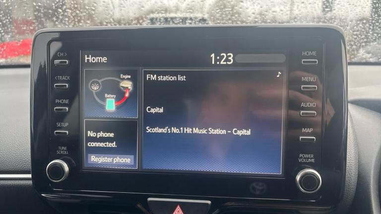 Vertu Motors Toyota Hamilton are proud to present the Toyota approvedToyota Yaris Design 1.5 HybridIn stunningEclipse Black This particular vehicle comes with2manufacturer services carried out by a Toyota Approved dealer.Experience the perfect fusion of design, performance, and fuel efficiency with the 2023 Toyota Yaris Design 1.5 Hybrid. This outstanding vehicle signifies an elegant synergy of top-tier specifications and ultimate economy, offering a future-focused driving experience.The exterior of the Yaris Design blends contemporary aesthetics with functional form. Its slim, sharp lines and refined detailing underscore its unique character, striking the perfect balance between stunning style and practicality.Step inside and immerse yourself in the Yaris Design’s stylish and spacious interior. High-quality materials, combined with advanced infotainment and connectivity features, define a space that's as comfortable as it is cutting-edge. The practical layout ensures accessibility and convenience on every trip you make.Matching its impressive specifications and economy, the 2023 Toyota Yaris Design features Toyota's Safety Sense suite for your security and peace of mind. This system encompasses a range of cutting-edge driver assistance technologies, providing a safety network that watches over you on every journey.In short, this forward-thinking vehicle is far more than just a car. The 2023 Toyota Yaris Design 1.5 Hybrid is a symbol of modern driving – where incredible design, top-of-the-range specifications, and brilliant economy blend seamlessly in a compact format.Choose the 2023 Toyota Yaris Design 1.5 Hybrid for a driving experience that's as memorable as it is efficient. It's not merely about reaching your destination, but rather savoring every moment of your environmentally-conscious journey. With the Yaris Design, the future of driving is undeniably here..Air Conditioning, Climate Control, Metallic Paint, Cruise Control, Alloy Wheels, DAB Radio, Bluetooth, Stop Start, USB, Manufacturer Approved, Diamond Cut Alloy Wheels, Adaptive cruise, Apple-Android Play, Rear Camera, Auto Lights& Rain Sensors, Rear privacy glass, Acoustic windscreen glass, Auto windscreen wipers, Front auto power windows with anti jam protection, Rear auto power windows with anti jam protection, Rear wiper, Rain sensor, Variable front intermittent wipers, ABS+EBD+Brake assist, Electronic parking brake, Hill start assist control (HAC), Emergency brake light system (EBS), Vehicle Stability Control (VSC), E-call, Bluetooth connectivity, Voice recognition, Electric power steering, Adaptive cruise control, Reversing camera, Adjustable speed limit with speed warning, Pre-collision system (PCS), Lane trace assist, 2x Master key, Smartphone integration with Apple CarPlay and Android auto, Hybrid energy display