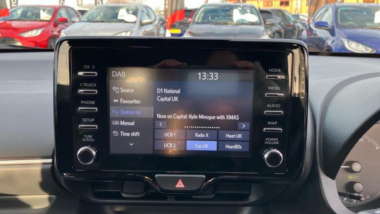 Introducing the 23-plate Toyota Yaris 1.5 Hybrid Icon, a modern and efficient hybrid hatchback designed for drivers seeking style, economy, and advanced technology. This five-door model combines Toyota’s renowned hybrid engineering with practical design, offering a smooth, quiet, and fuel-efficient driving experience for both city commuting and longer journeys.Powered by a self-charging 1.5 hybrid engine paired with a seamless CVT automatic gearbox, the Yaris delivers excellent fuel economy and low emissions without compromising on performance. The hybrid system intelligently switches between petrol and electric power, helping to reduce running costs while providing a responsive and enjoyable drive..Air Conditioning, Alloy Wheels, Bluetooth, Low Mileage, Full Service History, USB, Manufacturer Approved, Rear Camera& Pre Crash Prevention, Front and rear floor mats, Border/stitching and Yaris logo on floor mats, Auto windscreen wipers, Front auto power windows with anti jam protection, Variable front intermittent wipers, Rear auto power windows with anti jam protection, Noise reduction layer on windscreen, Rear intermittent wipers, Rear window defogger with timer, Hill start assist control (HAC), Electronic parking brake, Ventilated front disc brakes, ABS/EBD, Emergency brake light signal (EBS), Solid rear disc brakes, Vehicle Stability Control (VSC), Default front suspension, E-call, Bluetooth connectivity, Wireless Smartphone integration incl Apple CarPlay, Electric power steering, Lane trace assist, Emergency steering assist, Adjustable speed limiter, Emergency driving stop system, Driver attention alert, Road sign assist