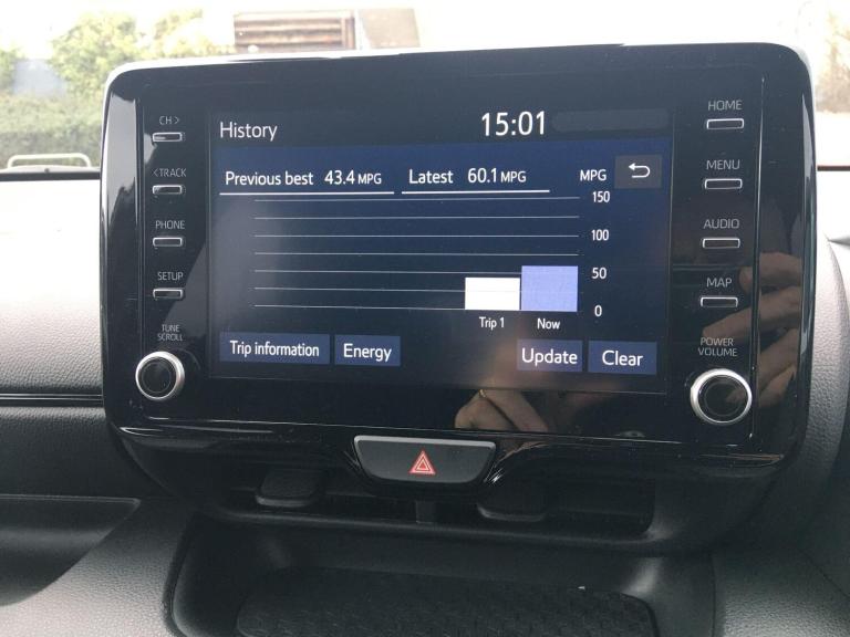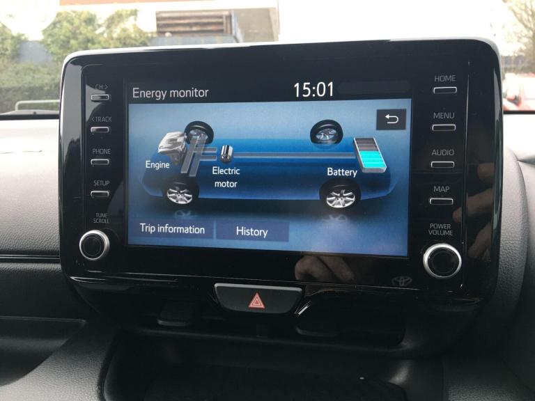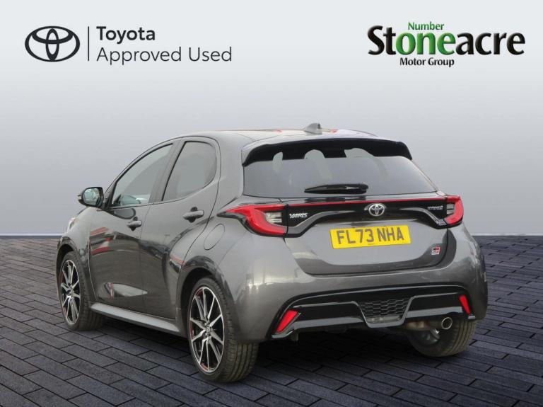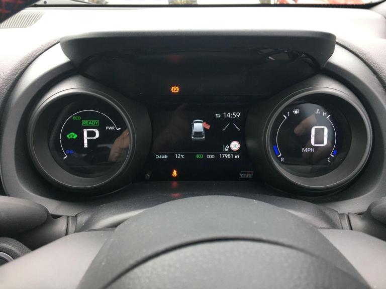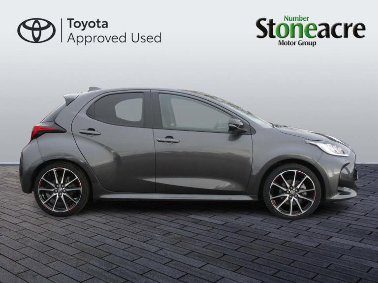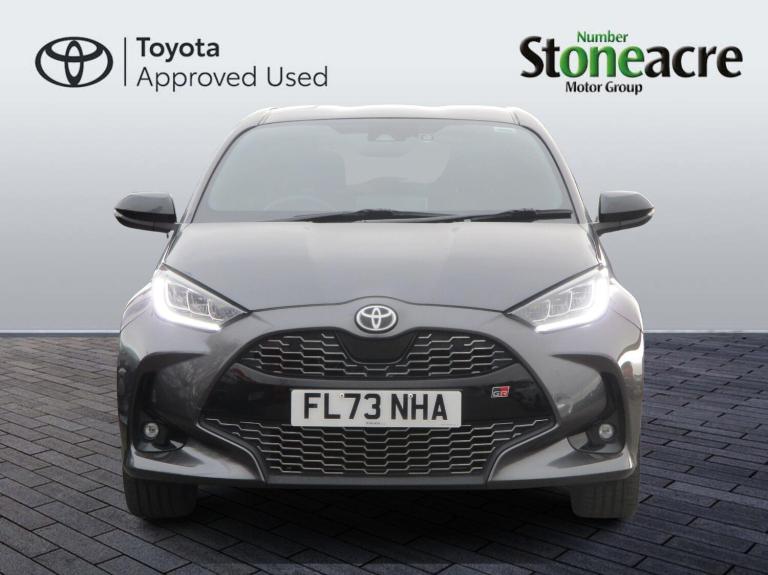 This 2023 Toyota Yaris VVT-h GR SPORT is a Toyota manufacturer approved vehicle, boasting a full dealership service history for your peace of mind. This Euro 6 compliant model features a responsive 1.5L petrol hybrid engine and comes equipped with the GR SPORT trim, offering a refined driving experience. Stay connected and comfortable with Bluetooth connectivity and dual zone automatic air conditioning, which can even be controlled remotely via MyT, including the air conditioning system. For enhanced safety and convenience, it includes Toyota Safety Sense 2, featuring adaptive cruise control.The Yaris GR SPORT stands out with an impressive fuel economy of 64 mpg, demonstrating its efficiency compared to other vehicles in its class. Furthermore, its low CO2 emissions highlight its environmentally conscious design. This combination of advanced technology, excellent fuel efficiency, and comprehensive servicing makes this Yaris a compelling choice for those seeking a reliable and modern compact car.