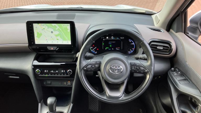 Discover this 2023 Toyota Yaris Cross VVT-h Excel, a smart choice for those seeking efficiency and modern features. This Euro 6 compliant model boasts a 1.5L Petrol Hybrid engine, offering a compelling blend of performance and economy. Inside, you'll appreciate the convenience of Bluetooth connectivity, allowing for seamless integration with your devices. For enhanced visibility and safety, it comes equipped with LED projector headlights, illuminating your path with clarity. Parking is made simpler too, thanks to the reversing camera with dynamic guide lines, providing clear visual assistance.This Yaris Cross Excel stands out with its impressive fuel economy, achieving a highlight of 57 mpg, which indicates it performs better than many similar vehicles in its class. Furthermore, its low insurance group rating suggests that running costs will be more affordable. The low CO2 emissions also highlight its environmental consideration, making it a responsible and economical option for your daily journeys..Yaris cross floor mats, Privacy glass, Acoustic windscreen glass, Front and rear electric windows with auto up/down function, Rain sensor, Anti-jam protection on power windows, Rear window defogger, Intermittent rear wiper, Noise reduction layer on windscreen, Auto intermittent windscreen wipers, Traction control, ABS+EBD+Brake assist, Electronic parking brake, Emergency brake light system (EBS), Hill start assist control (HAC), Downhill Assist Control (DAC), Steering assisted vehicle stability control, Bluetooth connectivity, Wireless Mobile Phone Charger, Electric power steering, Blind spot monitoring, Driver attention alert system, Lane trace assist, Full range intelligent adaptive cruise control, Adjustable speed limiter, Adjustable speed limiter switch on steering wheel, Advanced parking assist, Drive Mode Selector, 360 degree panoramic view monitor, Telephone switch on steering wheel, Voice recognition switch on steering wheel