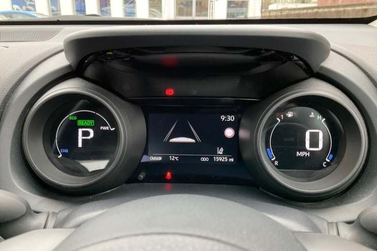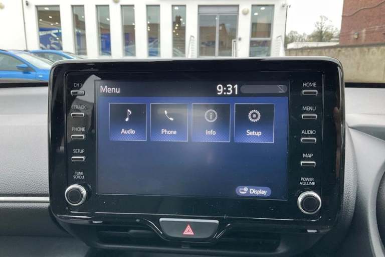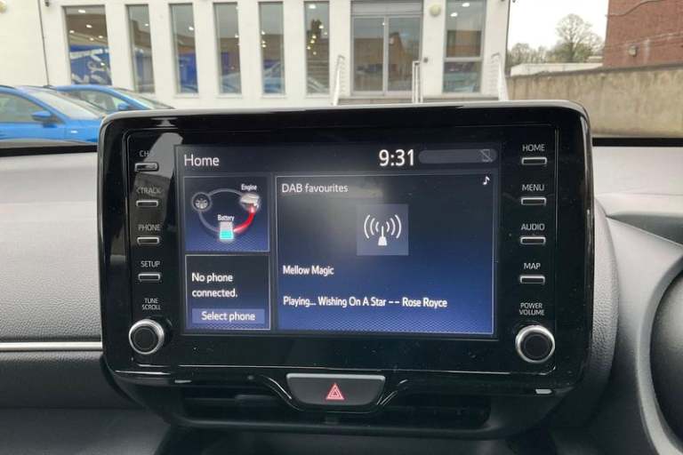 7 Multi information display screen, 9 Toyota touch 3 multimedia system with Smartphone integration with Apple CarPlay and Android auto, Adaptive cruise control, multi info switches on steering wheel, Adjustable speed limiter, Bluetooth connectivity, Color multi-information display, Digital speedometer, Digital tachometer, Drive mode selector, Driver attention alert system, eCall emergency system, Electric power steering, Emergency driving stop system, Full range intelligent adaptive cruise control, Hybrid system indicator, Intersection turn assist, Key reminder warning, Lane trace assist, My T Connected services, Pre-collision system enhanced with emergency steering assist, Reversing camera, Road sign assist - RSA, Static guide lines on reversing camera, Tailgate, Telephone switch on steering wheel, 3rd brake light, Acoustic windscreen glass, Anti-jam protection on power windows, Auto high beam [AHB] with on/off switch, Auto intermittent windscreen wipers, Automatic headlights, Automatic headlights cut-off, Black door moulding, Black lower front grille, Black protection moulding on side doors, Black upper front grille, Black wheel arch mouldings, Body colour door handles, Body colour front bumper, Body colour rear bumper, Electric adjustable heated door mirrors, Follow me home headlights, Front and rear electric windows with auto up/down function, Halogen projector headlights, Headlight cut off reminder, Indicators integrated on door mirrors, Intermittent rear wiper, LED daytime