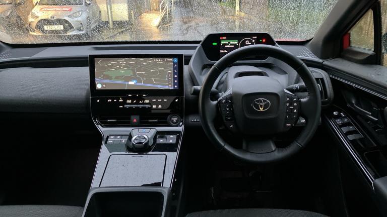 We are thrilled to showcase this pioneering Toyota bZ4X, the first of a new generation of all-electric SUVs that perfectly blends futuristic design with exceptional driving dynamics. This vehicle is finished in the stunning Scarlet Flare premium paint, a color that provides a deep, pearlescent glow and emphasizes the bold, modern lines of the bodywork. First registered in January 2024, this car represents the very latest in zero-emission technology and remains in showroom condition.This specific Motion model is powered by a responsive one hundred fifty kilowatt electric motor with front wheel drive, delivering instantaneous torque and a serene, quiet ride. A standout feature is the upgraded eleven kilowatt on-board charger, which allows for significantly faster and more efficient charging at home or at compatible public stations. Inside, the cabin is a sanctuary of technology and comfort, featuring a large high-definition multimedia display, heated seats, and a heated steering wheel, all designed to make every journey effortless.As with our latest models, this vehicle benefits from the ten year service activated warranty, providing incredible long-term security as the coverage is renewed with every qualifying service at a Toyota center. With its spacious interior and advanced safety systems, this bZ4X is the ideal choice for those ready to embrace the electric future without compromising on style or peace of mind..Air Conditioning, Climate Control, Metallic Paint, Cruise Control, Satellite Navigation, Heated Seats, DAB Radio, Bluetooth, Parking Sensors, Low Mileage, Full Service History, USB, Manufacturer Approved, Electric Seats, Memory Seats, Diamond Cut Alloy Wheels, Adaptive cruise, Keyless Entry-Push Button Start, Apple-Android Play, Rear Camera, Electric Opening Tailgate, Auto Lights, Electric Folding Mirrors, Lane Departure, Lane Keeping Assist, Pre Crash Prevention& Rain Sensors, 11kW AC Charger and 150kW DC fast charger, Rain sensor, Rear wiper, Privacy glass, Auto wipers, UV-filter on rear windows, Auto up and down function on power windows, UV-filter on driver and front passenger windows, Front wiper de-icer, Heated washer nozzle on windscreen, Hill start assist control (HAC), Electronic parking brake with hold function, Pre collision system with pedestrian, cyclist and motorbike detection, Front to front oncoming car and motorbike daytime detection, Voice recognition