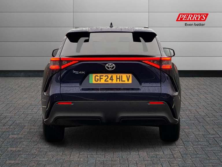 This 2024 Toyota bZ4X Motion boasts exceptionally low mileage for its age, having covered just 4139 miles. As an electric vehicle, it offers a substantial battery maximum range of 313 miles, ensuring fewer stops on longer journeys. This particular model comes with an MOT valid until June 2027, providing peace of mind. Notable features include striking LED headlights, Intelligent Adaptive Cruise Control for effortless driving, and seamless Bluetooth connectivity. Youll also appreciate the convenience of a wireless mobile phone charger and the advanced 360 Degree Panoramic View Monitor, which aids in parking and manoeuvring. The Toyota bZ4X Motion is designed for modern driving needs. Its 71 kWh battery can be fully charged at home using a 7kW charger in approximately 9 hours and 10 minutes, making overnight charging simple. For quicker top ups, a rapid public charge can take the battery from empty to 80% in just 34 minutes. These charging capabilities, combined with its impressive 313 mile range, position this bZ4X as a highly practical and efficient choice compared to other electric vehicles on the market.