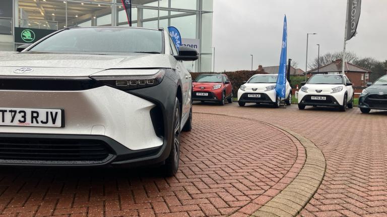 Discover the 2024 Toyota bZ4X Motion, an all electric vehicle offering an impressive maximum range of 313 miles on a full charge. This model boasts a 71 kWh battery, providing ample power for your journeys. Charging at home with a 7kW charger takes approximately 9 hours and 10 minutes, ensuring you can start each day with a full battery. For quicker top ups, the fastest public charging time from empty to 80% is a swift 34 minutes.The Toyota bZ4X Motion is equipped with notable features designed to enhance your driving experience. These include Intelligent Adaptive Cruise Control for effortless highway driving, a 360 Degree Panoramic View Monitor and Reversing Camera for confident parking, and LED Headlights for superior visibility. Stay connected on the go with Bluetooth Connectivity. The 313 mile maximum range at new highlights how this vehicle offers excellent long distance capability compared to many other electric cars..Rain sensor, Rear wiper, Privacy glass, Auto wipers, UV-filter on rear windows, Auto up and down function on power windows, UV-filter on driver and front passenger windows, Downhill Assist Control (DAC), Hill start assist control (HAC), Electronic parking brake with hold function, Pre collision system with pedestrian, cyclist and motorbike detection, Front to front oncoming car and motorbike daytime detection, Toyota safety sense with over the air updates, Voice recognition, Wireless Mobile Phone Charger, Bluetooth connectivity, Wireless smartphone integration with Apple CarPlay and Android auto, 7kW AC Charger and 150kW DC fast charger, PAS, Reversing camera, Emergency steering assist, Advanced parking assist, 360 degree panoramic view monitor, Lane trace assist, Lane departure alert with Steering Control, Intelligent adaptive cruise control, Acceleration suppression at low speed, Safe exit assist, Driver monitoring camera