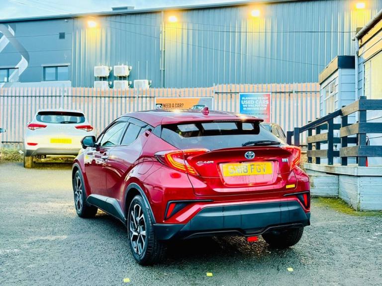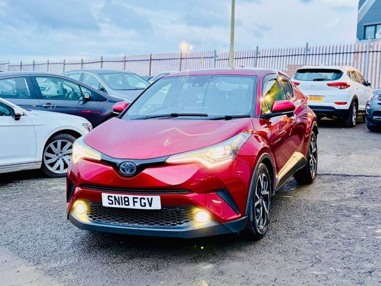 The 2018 Toyota C-HR 1.8 Hybrid is a stylish and efficient compact SUV that combines bold, modern design with Toyotas proven hybrid technology. Powered by a smooth 1.8-litre petrol-electric engine and automatic CVT transmission, it delivers a comfortable and economical drive with excellent fuel efficiency and low emissions, making it ideal for both city and motorway use. The C-HR offers a well-equipped interior with advanced safety features, modern infotainment, and a practical cabin layout, all backed by Toyotas reputation for reliability. With its distinctive looks, low running costs, and everyday practicality, the Toyota C-HR Hybrid is a smart and attractive choice for drivers seeking efficiency without sacrificing style..ABS Brakes, Air Bag Driver, Air Bag Passenger, Air Bag Side - Curtain, Air Bag Side - Driver/Passenger, Air Bag Side - Front & Rear Curtain, Air Bag Side -Front Side & Front Curtain, Alarm, Bi Xenon Lighting System, Central Door Locking - Remote, Central Locking, Centre Rear Seat Belt, Child Locks, Computer - Driver Information System, Cruise Control, Front Fog Lights, Front Head Restraints, Heated Rear Screen, Heated Washer Jets, Immobiliser, Power Assisted Steering, Rain Sensor, Seat - ISOFIX Anchorage Point, Seat - ISOFIX Anchorage Point - Rear, Seat Belt Pre-Tensioners - Front, Seat Belt Pre-Tensioners - Front/Rear, Third Brake Light, Traction Control, Tyre Pressure Control, Alloy Wheels, Alloy Wheels - 18in, Body Coloured Bumpers, Body Kit, Colour Coding - Body, Electric Door Mirrors - Heated/Folding, Headlamp Wash Wipe, Headlight Protectors, Headlight Washers, Heated Door Mirrors, Heated Front Screen, Metallic Paint, Roof Rails, Side Protection Mouldings, Side Steps, Sideskirts, Spare Wheel - Spacesaver, Spoiler, Tinted glass, Twin Electric Sunroof, Wash/Wipe - Rear, Xenon Headlights, Adjustable Steering Column/Wheel - Rake, Air Conditioning, Armrest - Front, Bluetooth Phone Preperation, Centre Console, Cigar Lighter, Cup Holder, Electric Windows - Front, Electric Windows - Front/Rear, Folding Split Rear Seats, Full 12 months MOT, Half Leather Seats, In Car Entertainment - Radio/CD, Power Socket, Power Socket - Front/Rear, Seats Electric - Driver, Seats Electric - Driver/Passenger, Steering Wheel Mounted Controls, Sunroof Visor, Trip Computer