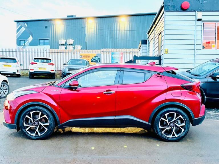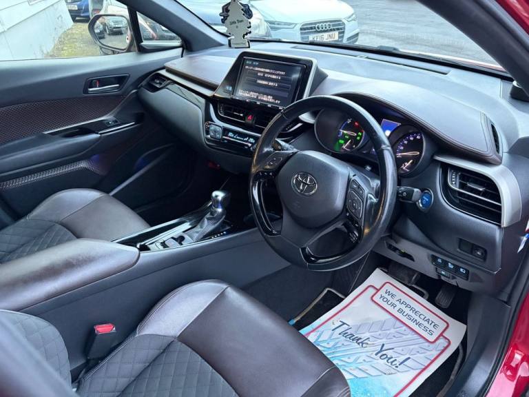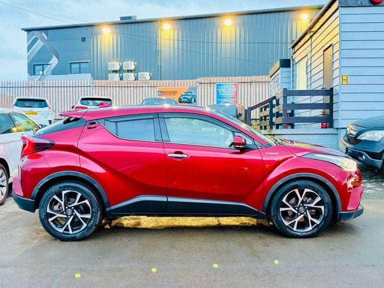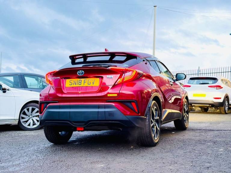 The 2018 Toyota C-HR 1.8 Hybrid is a stylish and efficient compact SUV that combines bold, modern design with Toyotas proven hybrid technology. Powered by a smooth 1.8-litre petrol-electric engine and automatic CVT transmission, it delivers a comfortable and economical drive with excellent fuel efficiency and low emissions, making it ideal for both city and motorway use. The C-HR offers a well-equipped interior with advanced safety features, modern infotainment, and a practical cabin layout, all backed by Toyotas reputation for reliability. With its distinctive looks, low running costs, and everyday practicality, the Toyota C-HR Hybrid is a smart and attractive choice for drivers seeking efficiency without sacrificing style..ABS Brakes, Air Bag Driver, Air Bag Passenger, Air Bag Side - Curtain, Air Bag Side - Driver/Passenger, Air Bag Side - Front & Rear Curtain, Air Bag Side -Front Side & Front Curtain, Alarm, Bi Xenon Lighting System, Central Door Locking - Remote, Central Locking, Centre Rear Seat Belt, Child Locks, Computer - Driver Information System, Cruise Control, Front Fog Lights, Front Head Restraints, Heated Rear Screen, Heated Washer Jets, Immobiliser, Power Assisted Steering, Rain Sensor, Seat - ISOFIX Anchorage Point, Seat - ISOFIX Anchorage Point - Rear, Seat Belt Pre-Tensioners - Front, Seat Belt Pre-Tensioners - Front/Rear, Third Brake Light, Traction Control, Tyre Pressure Control, Alloy Wheels, Alloy Wheels - 18in, Body Coloured Bumpers, Body Kit, Colour Coding - Body, Electric Door Mirrors - Heated/Folding, Headlamp Wash Wipe, Headlight Protectors, Headlight Washers, Heated Door Mirrors, Heated Front Screen, Metallic Paint, Roof Rails, Side Protection Mouldings, Side Steps, Sideskirts, Spare Wheel - Spacesaver, Spoiler, Tinted glass, Twin Electric Sunroof, Wash/Wipe - Rear, Xenon Headlights, Adjustable Steering Column/Wheel - Rake, Air Conditioning, Armrest - Front, Bluetooth Phone Preperation, Centre Console, Cigar Lighter, Cup Holder, Electric Windows - Front, Electric Windows - Front/Rear, Folding Split Rear Seats, Full 12 months MOT, Half Leather Seats, In Car Entertainment - Radio/CD, Power Socket, Power Socket - Front/Rear, Seats Electric - Driver, Seats Electric - Driver/Passenger, Steering Wheel Mounted Controls, Sunroof Visor, Trip Computer