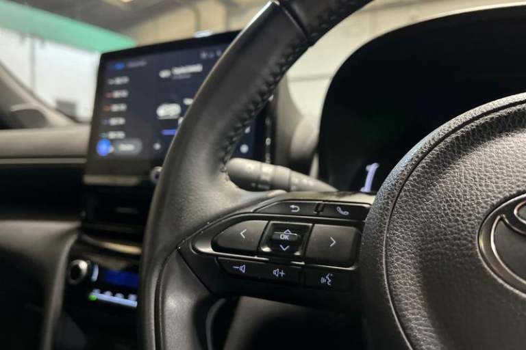10.5 Multimedia display screen, 7 Multi information display screen, Adaptive cruise control, multi info switches on steering wheel, Adjustable speed limiter, Bluetooth connectivity, Color multi-information display, Digital speedometer, Digital tachometer, Drive mode selector, Driver attention alert system, eCall emergency system, Electric power steering, Emergency driving stop system, Full range intelligent adaptive cruise control, Hybrid system indicator, Intersection turn assist, Key reminder warning, Lane trace assist, My T Connected services, Pre-collision system enhanced with emergency steering assist, Reversing camera, Road sign assist - RSA, Static guide lines on reversing camera, Tailgate, Telephone switch on steering wheel, Wireless Smartphone integration incl Apple CarPlay, Acoustic windscreen glass, Anti-jam protection on power windows, Auto high beam [AHB] with on/off switch, Auto intermittent windscreen wipers, Automatic headlights, Automatic headlights cut-off, Black door moulding, Black lower front grille, Black protection moulding on side doors, Black roof rails, Black upper front grille, Black wheel arch mouldings, Body colour door handles, Body colour front bumper, Body colour rear bumper, Electric adjustable heated door mirrors, Follow me home headlights, Front and rear electric windows with auto up/down function, Headlight cut off reminder, Indicators integrated on door mirrors, Intermittent rear wiper, LED 3rd brake light, LED daytime running lights guide,