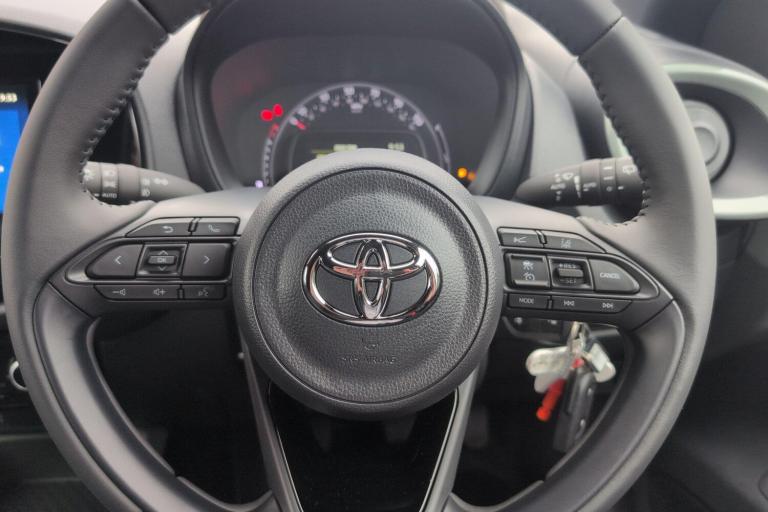 Available from 26/12/2025. Toyota Aygo X Hatchback 1.0 VVT-i Edge 5dr. Specification Includes 18in Alloy Wheels - 4-Double-Spoke - Bi-Tone Dark Grey - Machined-Face, 3-Spoke Leather Steering Wheel, 4.2in Multi-Information Screen, 50-50 Split Folding Rear 2nd Row Rear Seats, 8in Toyota Touch Multimedia System, 9in Toyota Smart Connect Multimedia System, Adaptive Cruise Control Switch on Steering Wheel, Adjustable Speed Limiter - ASL, Adjustable Speed Limiter -ASL- Switch on Steering Wheel, Analogue Speedometer, Anti-Lock Braking System - ABS - with Electronic Brake Force Distribution - EBD, Audio Switches on Steering Wheel, Auto Headlights, Auto Wipers, Automatic Air Conditioning, Automatic Headlight Cut-Off, Black Door Moulding, Black Insert on Steering Wheel, Black Wheel Arch Moulding, Bluetooth Connectivity, Boot Door Scuff Plate, Centre Room Light, Child Safety Door Locks, Chrome Interior Door Handles, Chrome Surround on Air Conditioning Button, Clean Air Filter, Colour Multi-Information Display, Digital Audio Broadcast - DAB, Digital Tachometer, Door Handles - Body Coloured, Door Mirrors - Gloss Black, Electric Heated Door Mirrors, Electric Power Steering - EPS, Emergency Brake-Light Signal - EBS, Emergency Steering Assist, Floor Mats, Follow Me Home Headlights, Front 12V Power Outlet, Front Bumper - Body Coloured, Front Fog Lights, Front LED Light Guide, Front Passenger Airbag On-Off Switch, Front Power Windows, Front Seat Belt Reminder, Gloss Black Upper Front Grille, HAC - Hill Start Assist Control, Headlight Cut-Off Reminder, Headlights - Halogen, Headrests - Front - Deco Art, Height Adjustable Driver Seat, ISOFIX Child Restraint System, Key Reminder Warning, Lane Departure Alert with Switches on Steering Wheel, Manual Headlight Levelling, Manual Tilt Steering Wheel, Manually Reclining Driver Seat, Manually Reclining Front Passengers Seat, Manually Sliding Drivers Seat, Manually Sliding Front Passenger Seat, Mirror on Driver Sun Visor, Mirror on Passenger Sun Visor, Multi-Info Switches on Steering Wheel, Pollen Air Filter, Power Back Door, Power Door Locks, Power-Adjustable Door Mirrors, Pre-Collision System with Pedestrian and Cyclist Detection, Privacy Glass - Rear Side Windows, Rear Headrests x2, Rear Seat Belt Reminder, Rear Window Defogger, Rear Window Wiper, Remote Door Lock, Reversing Camera, Roof - Head Lining Adhesive Head Lining, Short Antenna, Smartphone Integration - Apple Car Play and Android Auto, Speakers x4, Speed Limiter