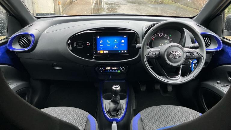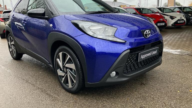 Turn every street into your stage. The Toyota Aygo X Edge in striking Juniper Blue Bi-Tone is built for drivers who thrive on the energy of the city. Bold, compact, and packed with personality, this eye-catching crossover brings movement, colour, and confidence to every urban journey.With its raised ride height, athletic crossover stance, and sculpted proportions, the Aygo X Edge refuses to blend in. The vivid Juniper Blue Bi-Tone finish adds a dynamic edge that pops against the city skyline, while those standout 18-inch Bi-Tone Dark Grey machined-face alloy wheels deliver serious street presence wherever you go.Designed to own the urban jungle, the Aygo X Edge pairs Toyota’s dependable 1.0L petrol engine with a slick manual gearbox for lively, responsive performance. It’s light on its feet, easy to manoeuvre, and perfectly suited to darting through traffic, squeezing into tight parking spots, and making the most of every gap in the city.Automatic headlights and rain-sensing wipers keep driving effortless, whatever the weather or time of day, while the compact footprint and elevated driving position give you confidence and control in busy surroundings. Small car agility meets crossover attitude — and the result is pure city freedom.Inside, the cabin is built for life on the move. The Toyota touchscreen multimedia system keeps you connected with wireless Apple CarPlay, Android Auto, Bluetooth, and DAB digital radio, while the reversing camera takes the stress out of even the trickiest city parking manoeuvres.City confidence comes as standard thanks to Toyota Safety Sense, delivering intelligent driver assistance that helps keep you protected on every journey, day or night. Whether you’re navigating rush-hour traffic or cruising home after dark, you’re always supported.As a Toyota Approved Used model, this Aygo X Edge has passed a comprehensive 145-point inspection and comes with up to a 10-year Toyota service-activated warranty, giving you total peace of mind from the moment you drive away.Now available at Vertu Toyota Rotherham..Climate Control, Metallic Paint, DAB Radio, Bluetooth, Low Mileage, USB, Manufacturer Approved, Diamond Cut Alloy Wheels, Adaptive cruise, Apple-Android Play, Rear Camera, Auto Lights, Lane Keeping Assist, Pre Crash Prevention& Rain Sensors, Floor mats, Privacy glass, Front and rear power windows, Auto wipers, Rain sensor, Rear windscreen defogger, Rear windscreen wiper, Variable intermittent windscreen wipers, Front power windows, Traction control, Hill start assist control (HAC), Anti lock braking system + Electronic brake force distribution, Emergency brake light signal (EBS), Vehicle Stability Control (VSC), Bluetooth connectivity, Smart phone integration with Apple car play/Android Auto, Adaptive cruise control, Lane departure warning system, Traffic sign recognition, Lane tracking assist - LTA, Start and stop, Fatigue monitor, PAS, Electric power steering, Adjustable speed limiter, Driver attention alert system, Voice recognition switch on steering wheel