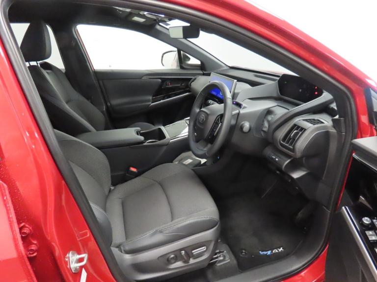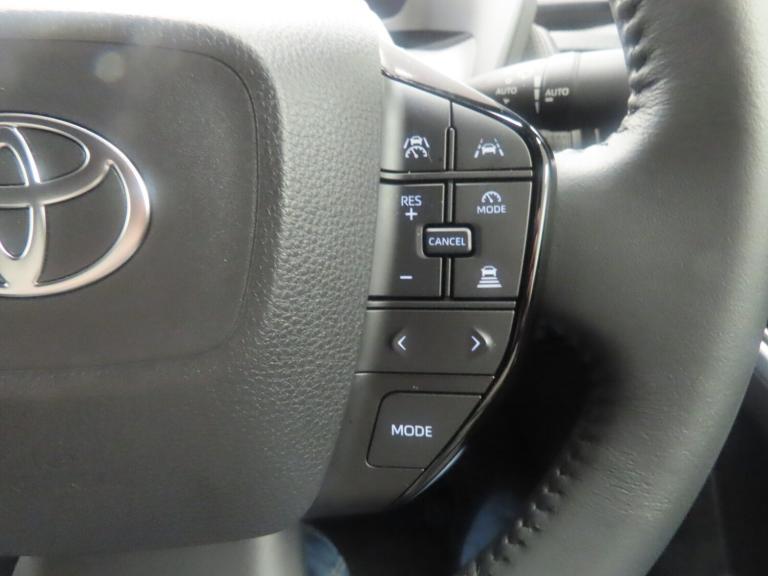 ..12.3'' multimedia display screen, 360 degree panoramic view monitor, 7'' Multi information screen, Acceleration suppression at low speed, Adaptive cruise control [ACC] switch on steering wheel, Blind spot monitor, Bluetooth connectivity, Driver monitoring camera, Emergency driving stop system, Emergency services call system, Emergency steering assist, Front Cross Traffic Alert, Front parking sensors with automatic object breaking, Intelligent adaptive cruise control, Intersection cut in traffic assist, Intersection turn assist, Lane departure alert with steering control, Lane trace assist, Multi information display switches on steering wheel, PAS, Rear cross traffic alert, Rear parking sensors with automatic object and car breaking, Remote boot door release on key, Safe exit assist, Smart entry and push button start, Smart voice assist, Speed limiter switch on steering wheel, Speed limiter with road sign assist, Tailgate, Telephone switches on steering wheel, Voice recognition, Wireless Mobile Phone Charger, Wireless smartphone integration with Apple CarPlay and Android auto, 11kW AC Charger and 150kW DC fast charger, 2 USB-C connectors front, 2 USB-C connectors rear, 6 speakers, DAB Digital radio, Front USB connection, Gloss black surround on multimedia display, Toyota touch 2 with go navigation, Adaptive high beam, Auto headlight levelling, Auto up and down function on power windows, Auto wipers, Automatic emergency stop signal on rear hazard lights, Automatic headlights, Automatic rear flashing hazard lights, Black lower front grille, Black roof rails, Black wheel arch mouldings, Body colour shark fin antenna, Body coloured door handles, Boot door release with push button, Door mirror puddle lights, Electric heated door mirrors, Electrochromatic auto dimming rear view mirror, Follow me home headlights, Front wiper de-icer, Headlight cut-off reminder, Heated washer nozzle on windscreen, LED daytime running lights, LED Headlights, LED High mounted stop lamp, LED Indicators, LED rear brake lights, LED rear combination lights, Lower front grille shape, Power adjustable door mirrors, Power back door, Privacy glass, Rain sensor, Rear fog lights, Rear roof spoiler, Rear side wing doors, Rear wiper, Towing hitch equipped for Towing hook, UV-filter on driver and front passenger windows, UV-filter on rear windows, 12v power outlet - front, 2 cup holders in front, 2nd row rear passenger room LED light, 3 seat bench in 2nd row, 3 spoke leather steering wheel,