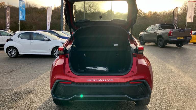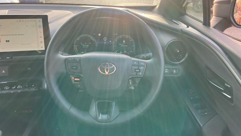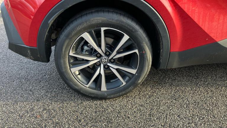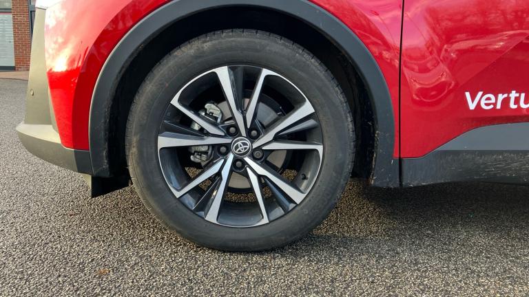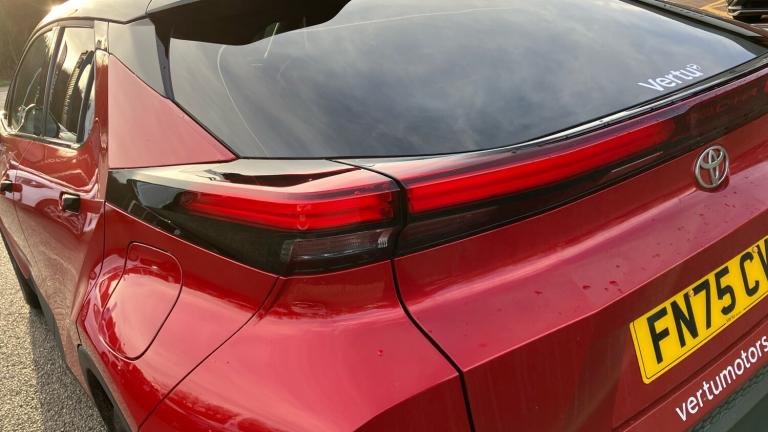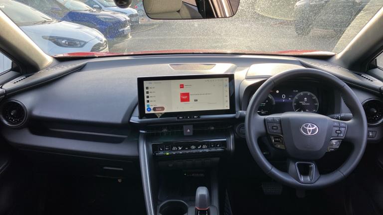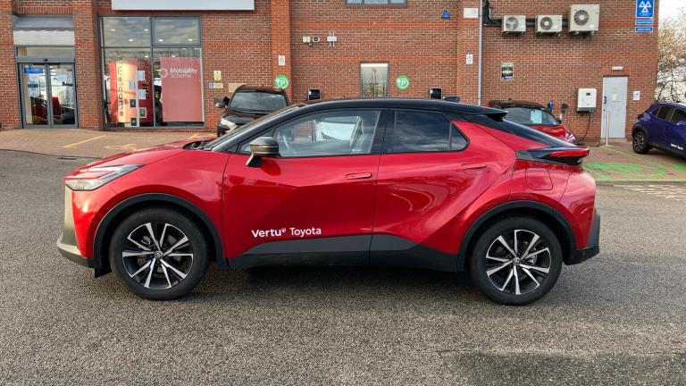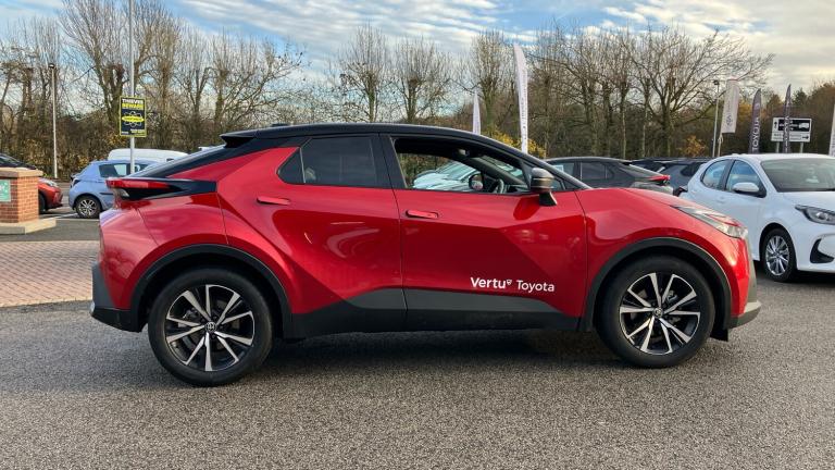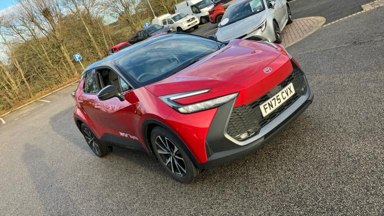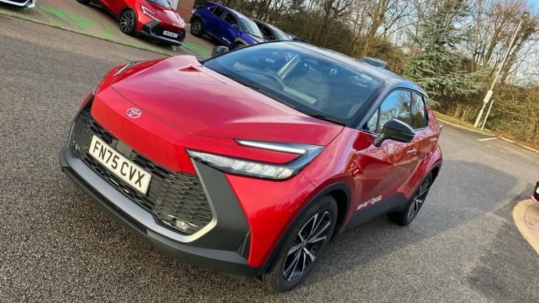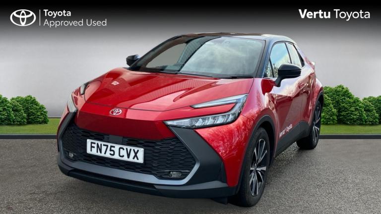 The 2025 Toyota C-HR Design 1.8 FWD Hybrid is a striking compact SUV, registered as a demonstrator in September 2025. It boasts an aggressive, coupe-like profile enhanced by the premium Scarlet Flare Bi-tone paint, featuring a contrasting black roof and 18-inch black machined-face alloy wheels.Powered by Toyota's 5th-generation 1.8-litre self-charging hybrid system, it delivers 140 bhp for an efficient yet responsive driving experience, with low CO 2&8203, emissions around 108 g/km.The 'Design' trim elevates the interior with advanced technology and comfort. Key features include an upgraded 12.3-inch multimedia display with cloud navigation and wireless smartphone integration, along with a 12.3-inch digital driver combimeter. It adds convenience with Smart Entry & Start, an electric power tailgate, heated front seats, and dual-zone climate control. Safety is guaranteed by Toyota Safety Sense 3 (including Blind Spot Monitor, Proactive Driving Assist, and front parking sensors with auto braking) and a reversing camera.Note on Mileage:As this is a demonstrator vehicle, the mileage will vary and should be confirmed with the us..Air Conditioning, Climate Control, Metallic Paint, Cruise Control, Satellite Navigation, Heated Seats, DAB Radio, Bluetooth, Parking Sensors, Low Mileage, Full Service History, USB, Manufacturer Approved, Diamond Cut Alloy Wheels, Adaptive cruise, Keyless Entry-Push Button Start, Apple-Android Play, Rear Camera, Electric Opening Tailgate, Auto Lights, Electric Folding Mirrors, Lane Departure, Lane Keeping Assist, Pre Crash Prevention& Rain Sensors, Floor mats - border/stitching, Mat Fitment, Privacy glass, Front and rear power windows, Variable front intermittent wipers, Auto up and down function on all power windows, Anti-jam protection on power windows, Rear window defogger, UV-filter on driver and passenger windows, UV-filter on rear windows, Noise reduction layer on windscreen, Rear window wiper, Automatic rain sensing wipers, ABS+EBD+Brake assist, Electronic parking brake, Hill start assist control (HAC), Front to front oncoming car and motorbike daytime detection