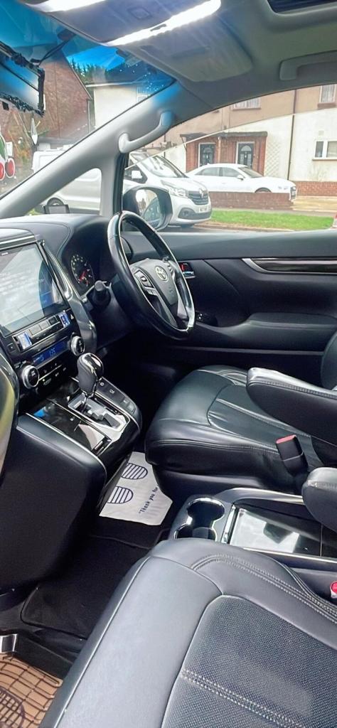 2015 TOYOTA VELLFIRE ZA EDITION (42 MONTHS WARRANTY)Variant / Trim: ZA Edition (high-spec Japanese market)Engine: 2.4L PETROL Transmission: Automatic Mileage: 63,976 miles Colour: Black (Exterior & Interior)Doors: 5 (including automatic rear sliding doors)Seats: Premium Leather Seats Features & Specifications: Duel Sunroof for added luxury and natural lightPush-start ignition for modern convenience Cruise control for comfortable long drivesRear-view camera and roof-mounted entertainment screen Automatic sliding rear doors for easy access Premium sound system Alloy wheels Full safety package including airbags and stability control Condition & History: Imported from Japan, fully compliant with UK regulationsWell-maintained, ready to drive Clean interior and exterior, Additional Information: Perfect for family travel or executive transport Ready for viewing or test drive