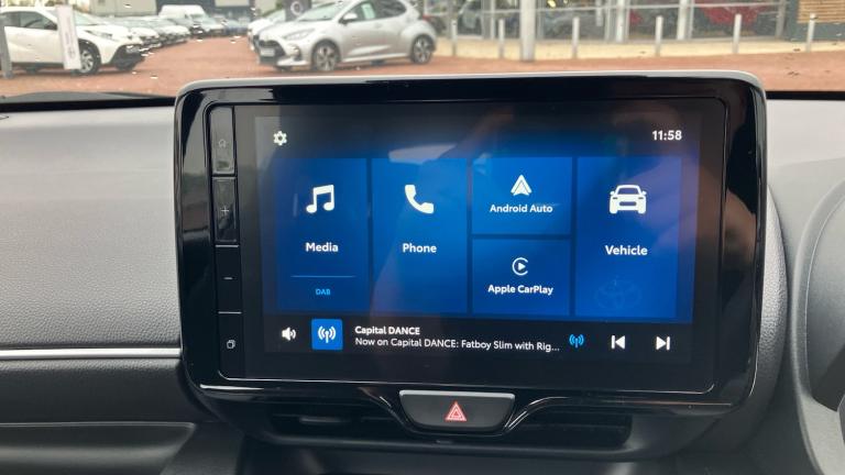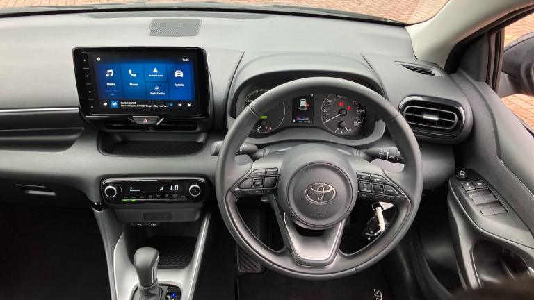 Finished in sleek Eclipse Black, this 25-plate self-charging hybrid hatchback is proof that small cars can still make a big impression. Confident, stylish and effortlessly practical, it’s the kind of car that quietly turns heads at the traffic lights—without ever needing to shout about it.Powered by a clever 1.5 self-charging hybrid system, it takes care of all the hard work while you sit back and enjoy the drive. No plugging in, no trailing cables across the driveway, no frantic searches for a charging point. It simply charges itself as you drive, smoothly switching between petrol and electric power to keep journeys efficient, calm, and surprisingly enjoyable. It’s like having a co-pilot who also happens to be incredibly organised.Inside, the Icon specification delivers a cabin that’s modern, comfortable, and packed with clever tech. The standout feature here is Apple CarPlay and Android Auto, which seamlessly bring your phone’s apps, navigation, playlists, and calls onto the dashboard screen. No awkward phone mounts, no juggling devices, no getting lost because you couldn’t see the map. Everything is exactly where you want it, making every journey feel smarter and far less stressful.Being Toyota Approved, this example comes with a full Toyota service history, showing it has been meticulously cared for. Even better, it benefits from a service-activated warranty running until March 2035, giving long-term peace of mind that quietly follows you everywhere.Compact on the outside but clever on the inside, it’s perfect for city driving, commuting, and weekend adventures. Easy to park, easy to drive, and economical without feeling boring, it fits seamlessly into modern life.Being sold by Vertu, you can expect a professional, transparent, and refreshingly straightforward buying experience.If you’re after a hybrid that’s efficient, well-equipped, and genuinely enjoyable to own, this Eclipse Black example ticks all the boxes. Smart, practical, and surprisingly fun—it proves that small can be mighty..Air Conditioning, Climate Control, Metallic Paint, Cruise Control, Alloy Wheels, DAB Radio, Bluetooth, Full Service History, USB, Manufacturer Approved, Adaptive cruise, Apple-Android Play, Rear Camera, Auto Lights, Lane Departure, Lane Keeping Assist& Pre Crash Prevention, Front and rear floor mats, Border/stitching and Yaris logo on floor mats, Auto windscreen wipers, Front auto power windows with anti jam protection, Variable front intermittent wipers, Rear auto power windows with anti jam protection, Noise reduction layer on windscreen, Rear intermittent wipers, Rear window defogger with timer, Hill start assist control (HAC), Electronic parking brake, Ventilated front disc brakes, ABS/EBD, Emergency brake light signal (EBS), Solid rear disc brakes, Vehicle Stability Control (VSC), Default front suspension, E-call, Bluetooth connectivity, Wireless Smartphone integration incl Apple CarPlay, Electric power steering, Lane trace assist, Emergency steering assist