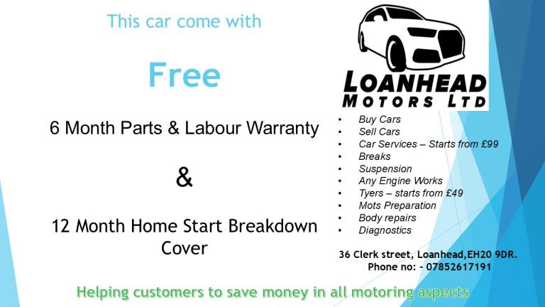 At Loanhead Motors Ltd, customer satisfaction is at the heart of everything we do. Our experienced and highly trained advisors in Loanhead are dedicated to delivering exceptional customer care. From used car sales to servicing, we are committed to providing the best service across our dealership. Our constant drive for excellence ensures we exceed industry standards, offering an outstanding customer experience throughout the Midlothian region. With an ever-changing stock list, we pride ourselves on offering only the best used cars. Every vehicle undergoes a strict mechanical and visual check, is fully serviced, and comes with a valid MOT certificate. Plus, we offer a fantastic range of aftersales services, including 12-month MOTs, free warranties, and breakdown cover. Our competitive finance packages are tailored to suit your budget, with options for PCP or HP and part-exchange available.