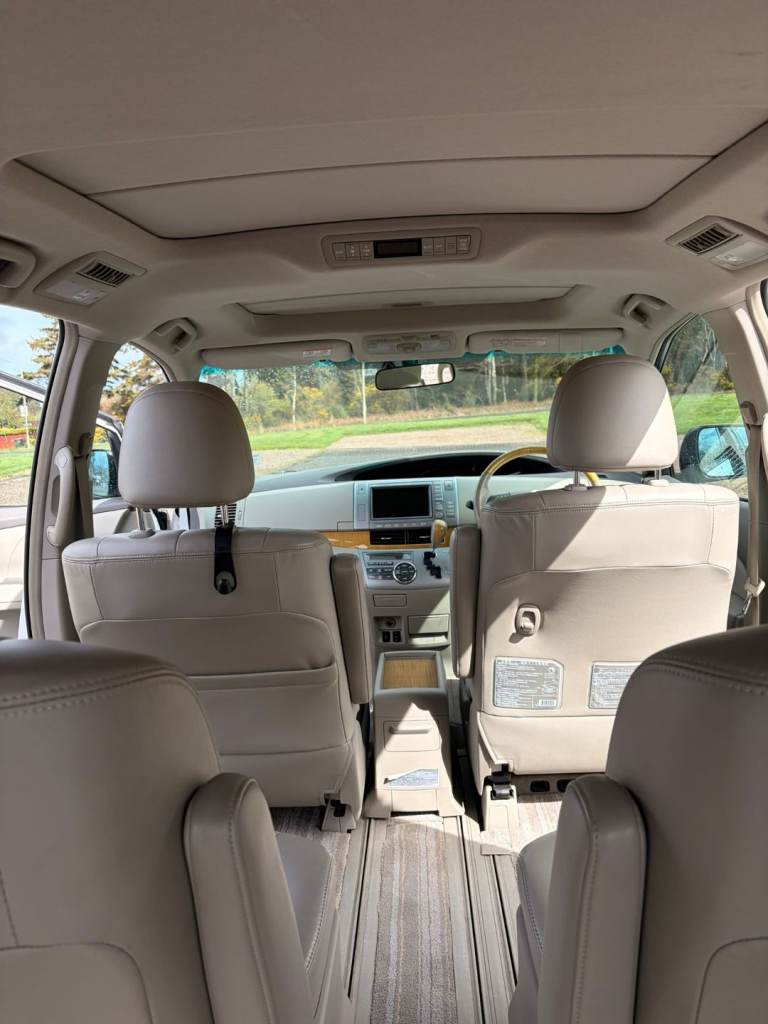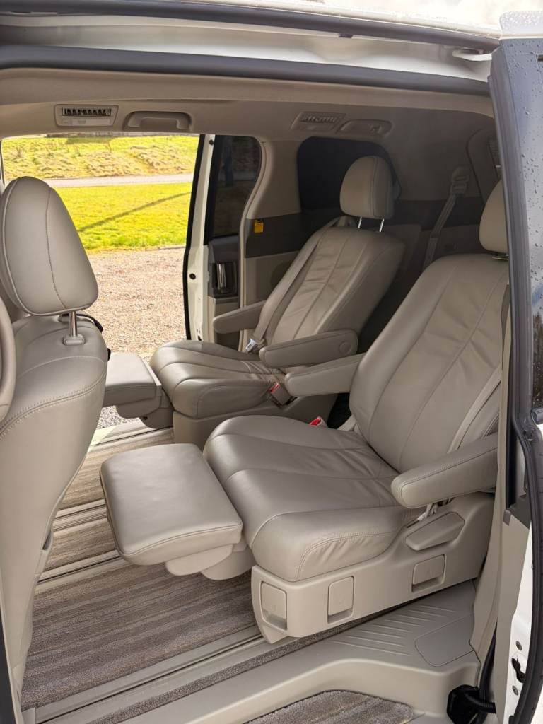 68k miles. Leather seats all round. Partial leather steering wheel. Double carpets, sliding seats in middle, back seats fold into boot area. Power side doors.