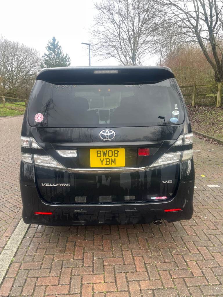 Selling our trusty Vellfire making way for a new car. One owner since importing from Japan. Very clean and tidy non smokers car. Serviced annually at local Japanese car experts in Southampton. Speedometer in kms. Rear axel bushes, windscreen seals and anti roll bushes all replaced, with DVD header/bluetooth/good sound system, aux power sockets and LCD screen in the back which is great for the children. Used as second car and weekend camper in the summer months, awning/ground sheet included in the sale. Open to sensible offer.
