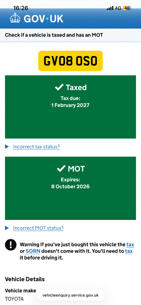 This vehicle has not been reported stolen, scrapped, exported or flagged as unroadworthy.