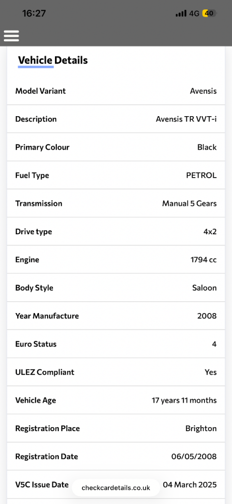 Posting for 6+ yearsToyota, AVENSIS, Saloon, 2008, Manual, 1794 (cc), 4 doors