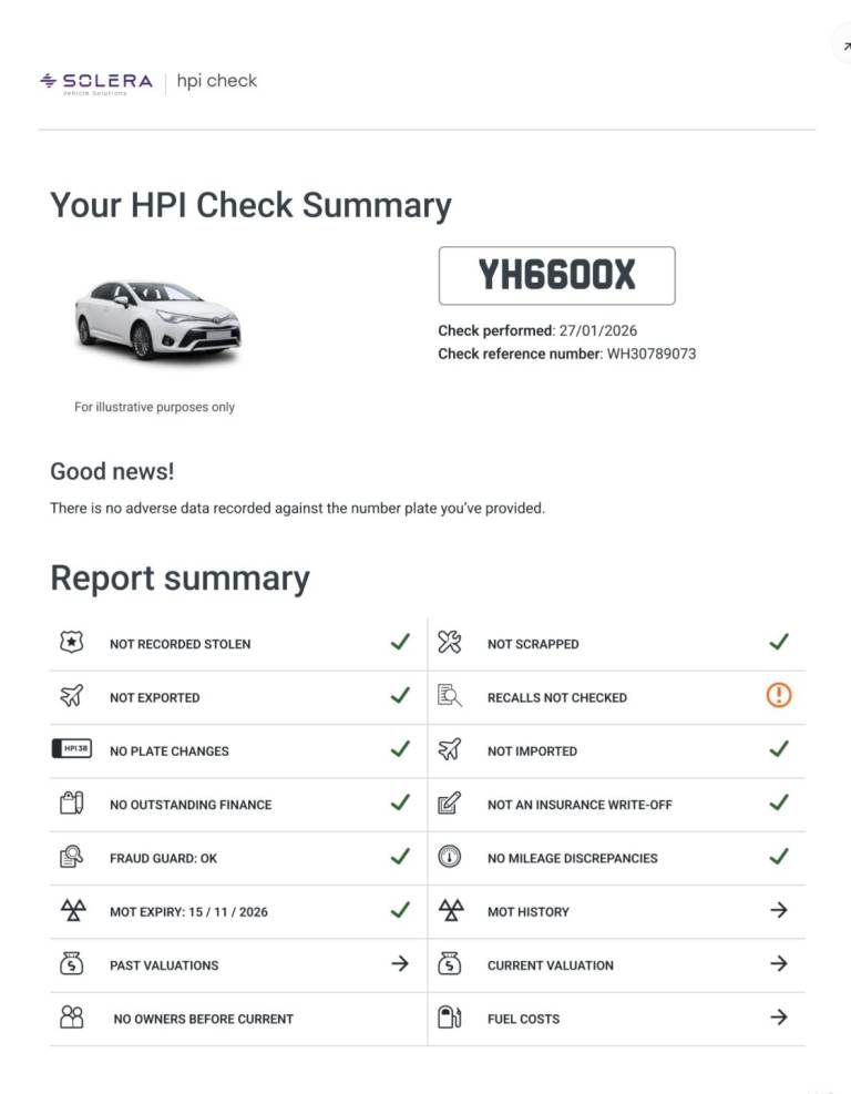 Our vehicle history check is provided for guidance only. Please check all the details with the seller before purchasing