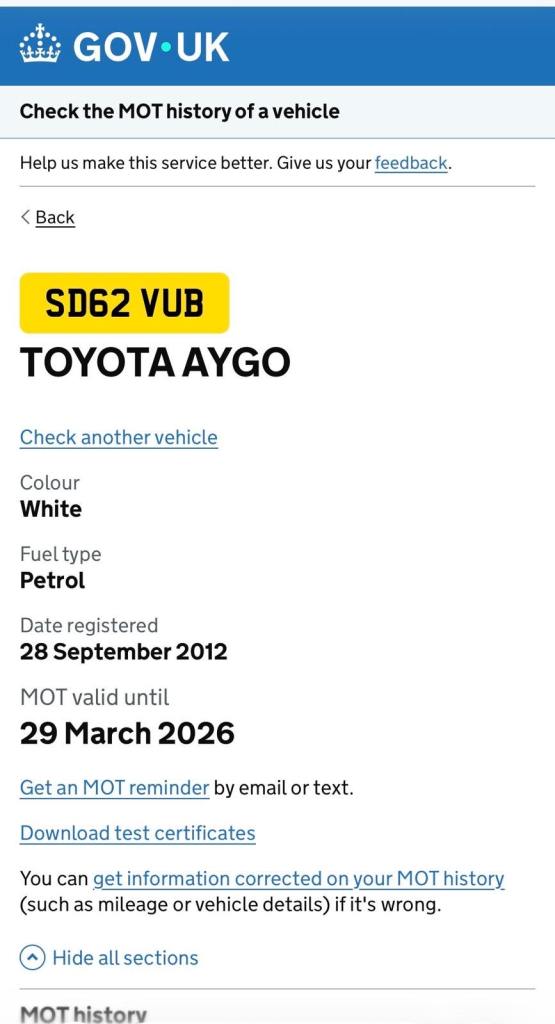 Mot 29/03/2026 and has Road tax very cheap £20 a year
