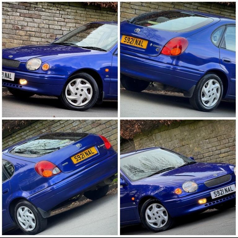 AN IMMACULATE COROLLA CD 1.6 4AFE ENGINE FINISHED IN A BEAUITFUL MARINE BLUE HAVING ONLY DRIVEN A GENUINE AND GENTLE 129,000 CORRECT MILES BACKED UP WITH A FULL AND I MEAN FULL UPTODATE TOYOTA MAINDEALER SERVICE HISTORY- A TOTAL OF 24 TOYOTA DEALER SERVICES WITH THE SAME SUPPLYING DEALER- LAST SERVICE JUST COMPLETED BY US. ONLY ONE FORMER PENSIONER OWNER FROM NEW (1 FORMER OWNER IN THE V5) WHO TRUELY CHERISHED THIS CAR. WE HAVE JUST FITTED A BRAND NEW 3 PIECE FRESH CLUTCH ALL READY FOR THE NEW BUYER. TIMING BELT HAS BEEN CHANGED 3 TIMES BY TOYOTA DEALER. THERE IS A VALID MOT PRESENT TILL FEBRUARY 2027. NEVER HAD ANY MAJOR ADVISORY IN ITS LIFE. THE CAR COMES WITH 3 GENUINE TOYOTA KEYS AND REMOTE FOBS WITH SUPPLYING DEALER KEY RINGS . FITTINGS INCLUDE AIRCON, SUNROOF (NOT TESTED), FRONT ELECTRIC WINDOWS, FACTORY CD WHEEL TRIMS WITH GOOD TYRES, REMOTE CENTRAL LOCKING, FRONT FOGS, GENUINE TOYOTA COROLLA OVERMATS, CD PLAYER WITH RADIO AND MANY MORE. THIS IS A LOVELY LOVELY CAR THROUGHOUT!!! THE ENGINE PURRS LIKE A KITTEN AND IDLES VERY NICE. THE CLUTCH BITES WELL AND HAS A GOOD PULL. THE GEARS CLICK INTO PLACE AND FEEL VERY TIGHT AND PRECISE. WE HAVE DRIVEN IT HOME APPROX 50 MILES ON THE MOTORWAY WITH NO KNOWN FAULT. THE BODYWORK IS IN IMMACULATE CONDITION WITH NO MAJOR SCRATCHES OR DENTS- 90% CLEAN ON THE BODY AND RETAINS ITS ORIGINAL SHINE. INSIDE AS CLEAN AS A BED OF ROSES AND STILL RETAINS THE ORIGINAL COROLLA SCENT. THE UNDERBODY IS IN TIDY CONDITION ALTHOUGH IT HAS BEEN REGULARLY WAX OILED TO PREVENT THE SPREAD OF RUST - SUBFRAME SILLS ARCHES ARE SIMPLY EXCELLENT !! FIND ANOTHER AS NICE WE CHALLENGE YOU. HAS TO BE ONE OF THE NICEST AVAILABLE EXAMPLES ON THE NET. YOU WILL STRUGGLE TO FIND A NICER ONE. £500 DEPOSIT SECURES. NATIONWIDE DELIVERY AT VERY REASONABLE COSTS. VIEWING AT APPOINTMENT BASIS CALLS AFTER 10 AM PLEASE. THANKS FOR BROWSING :)