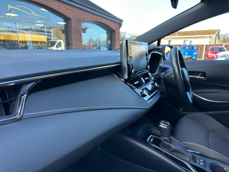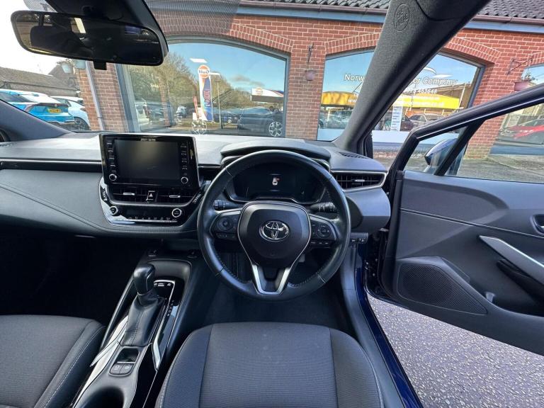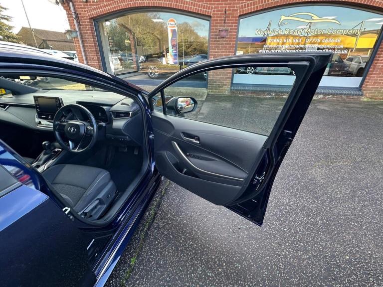 A One Owner, Denim Blue-Main Dealer Service History will come with a Main Dealer Service plus 12 months Main Dealer Warranty. A great example with Low Miles. This 2021 Toyota Corolla VVT-h Icon Tech presents an exceptional ownership proposition with its remarkably low mileage of just 19,700 miles, a testament to its careful single owner. This Euro 6 compliant, 1.8L petrol hybrid model boasts a full service history and comes with a 12 month warranty and a 12 month MOT for your peace of mind. The Icon Tech trim level ensures you are equipped with a suite of intelligent features designed for convenience and safety, including Adaptive Cruise Control with Speed Limiter, automatic headlights, and front and rear parking sensors. Smartphone integration is seamless with Apple CarPlay and Android Auto, keeping you connected on every journey. The benefits of choosing this Corolla are clear when you consider its highlights. Its impressive fuel economy of 61 mpg means fewer trips to the petrol station, while its low CO2 emissions contribute to a more environmentally friendly drive. The low insurance group further adds to its affordability, making it a sensible choice for many drivers. You will also appreciate the generous boot space, offering ample room for shopping or luggage, demonstrating how this vehicle is better equipped for everyday life than many others in its class.