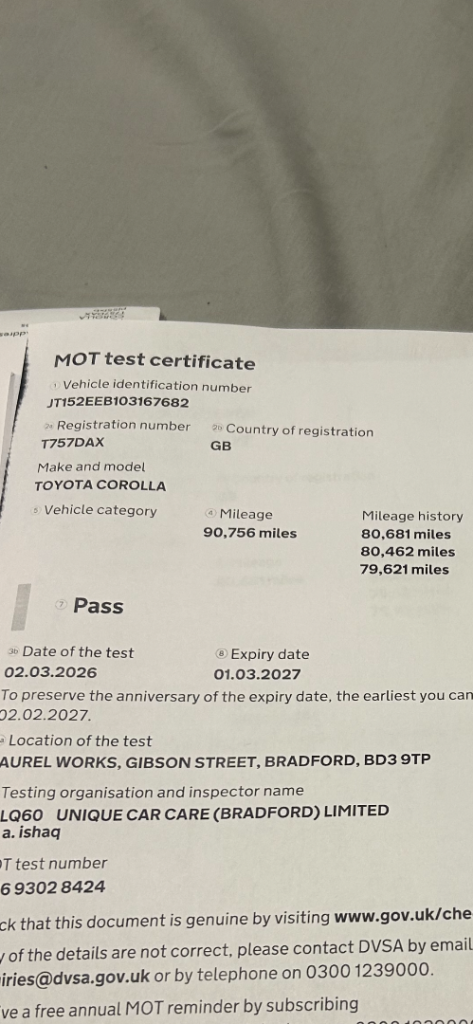 Here I am selling this amazing 1.3 Toyota CORROLA 3 door hatchback Automatic fully serviced low mileage car well maintained ! Timing belt water pump done on 81,000 & auxiliary belts done. Full 12 months M O T ! No advisories also. The car is very clean from underneath professionally undersealed & recently just done new 4 x links , track rod ends & brake pads plus handbrake sorted unbelievable to drive nothing to do for new driver amazing fuel economy also ! I changed the front driver side wing also the previous one had rust on it so I changed it now the whole car is immaculate in out underneath thanks for viewing no silly offers please as I also have things to buy I have spent tremendous amount on it plus 2 times front new tyres and rear and also new shockers put in last year as seen on the paperwork