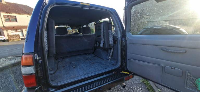 The interior is clean and tidy. It’s an 8-seater and has all the seats present. You can fold the back rows flat if you’re using it for camping or flip them up to the sides if you need the boot space.