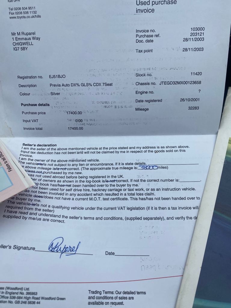 hello i'm based in Essex i'm looking to sell my Toyota Previa 2.4 Petrol Automatic, it has Mot until October 2026 also it has lots of service history including bill of when it was first bought from toyota in 2003 for £17400 it has 3 owners in total, mileage is 239k which proves how reliable it is and how well maintained it has been.this has been well maintained and drives like new