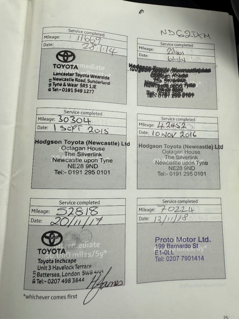 The car has 2 previous owners and has been in my family for over 10 years. It has been very well looked after, regularly serviced and maintained, with some services carried out by Toyota. The mileage is genuine and the car runs very well. It was used for pco until Dec 2022.