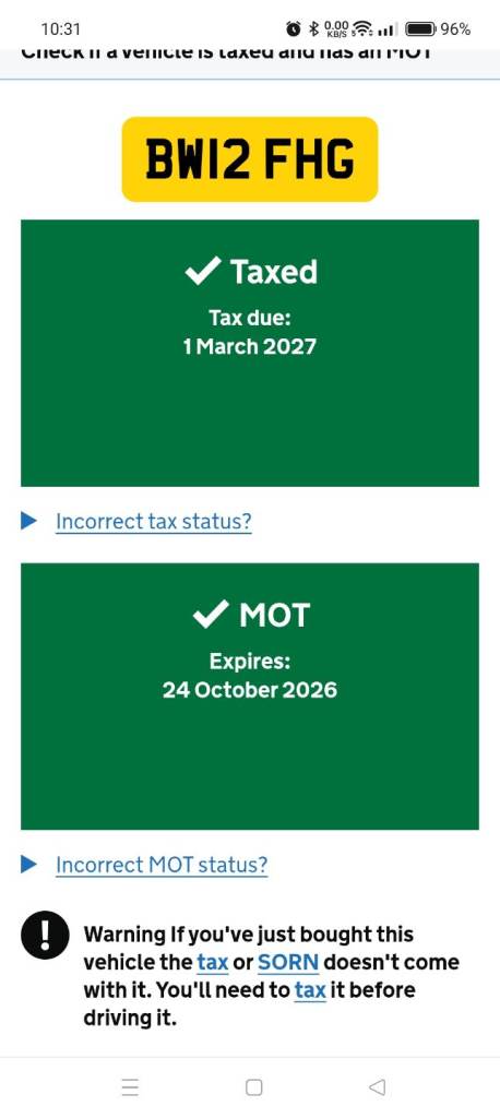 This vehicle has not been reported stolen, scrapped, exported or flagged as unroadworthy.