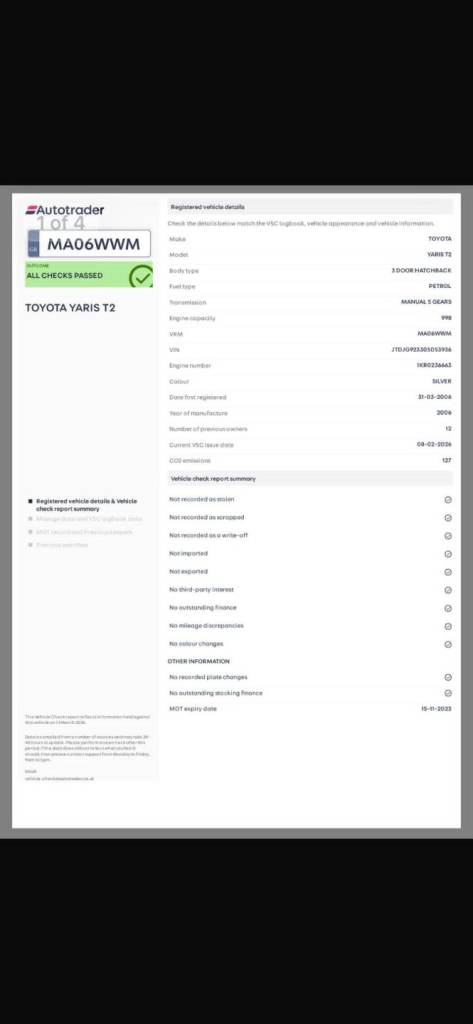 Our vehicle history check is provided for guidance only. Please check all the details with the seller before purchasing