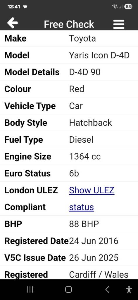 Our vehicle history check is provided for guidance only. Please check all the details with the seller before purchasing