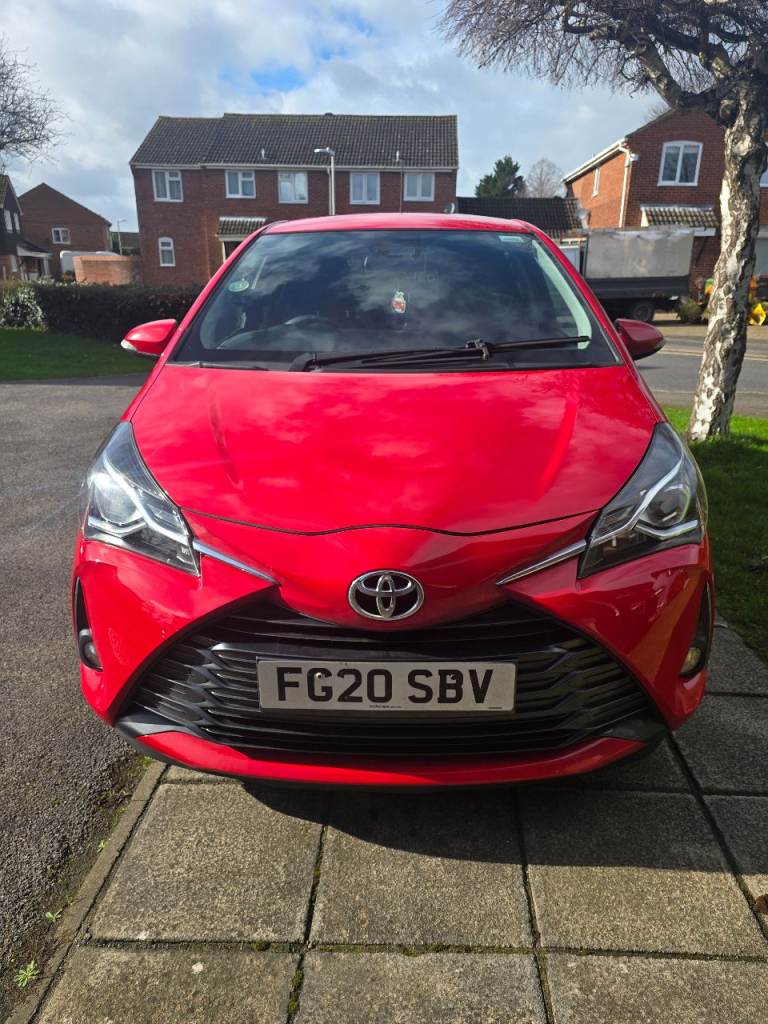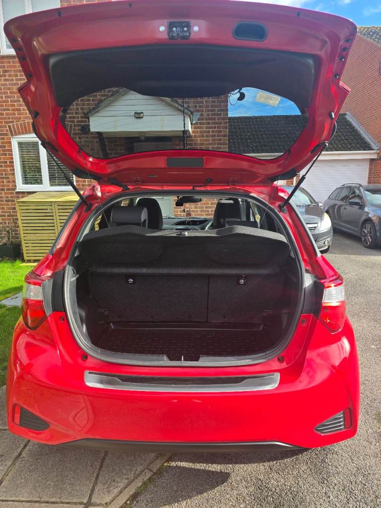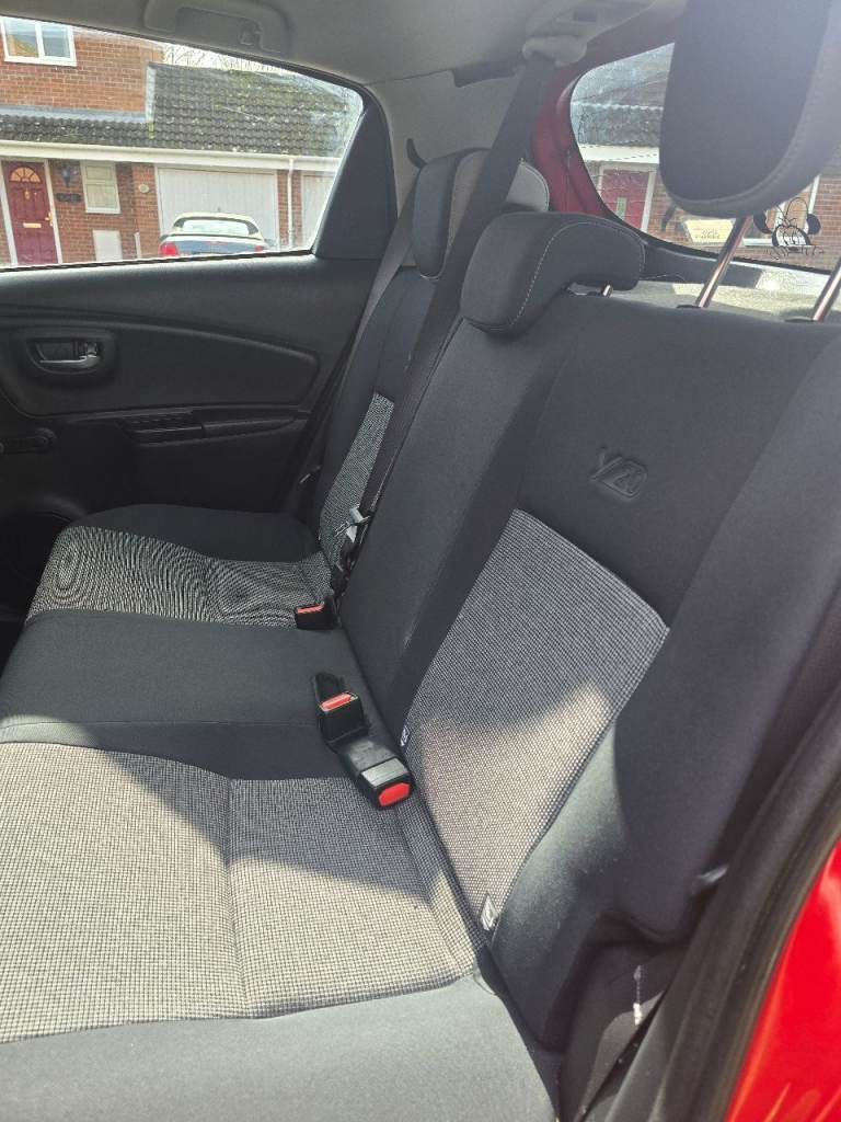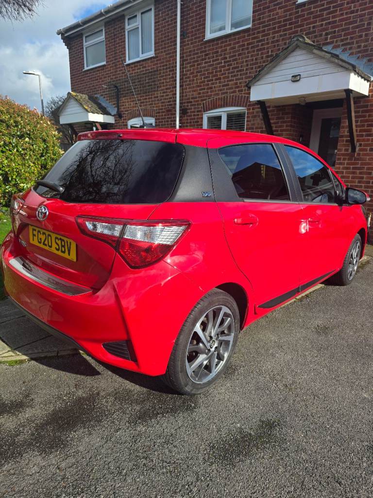 Toyota Yaris Y20 in red with bi-tone features. It is in excellent condition, with any damage or scratches shown in the images. The vehicle has cruise control, reversing camera, lane assist, auto-dipping full beam, breaking technology to alert if getting to close to the vehicle in front, auto wipers dependant on the amount of rain, DAB radio along with Bluetooth, FM and AM, alloy wheels, rubber insert for the boot to keep the carpet fresh and dirt free, rear tinted windows for privacy.