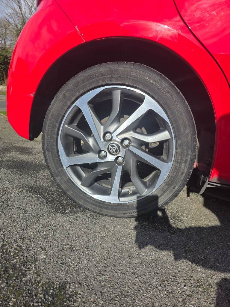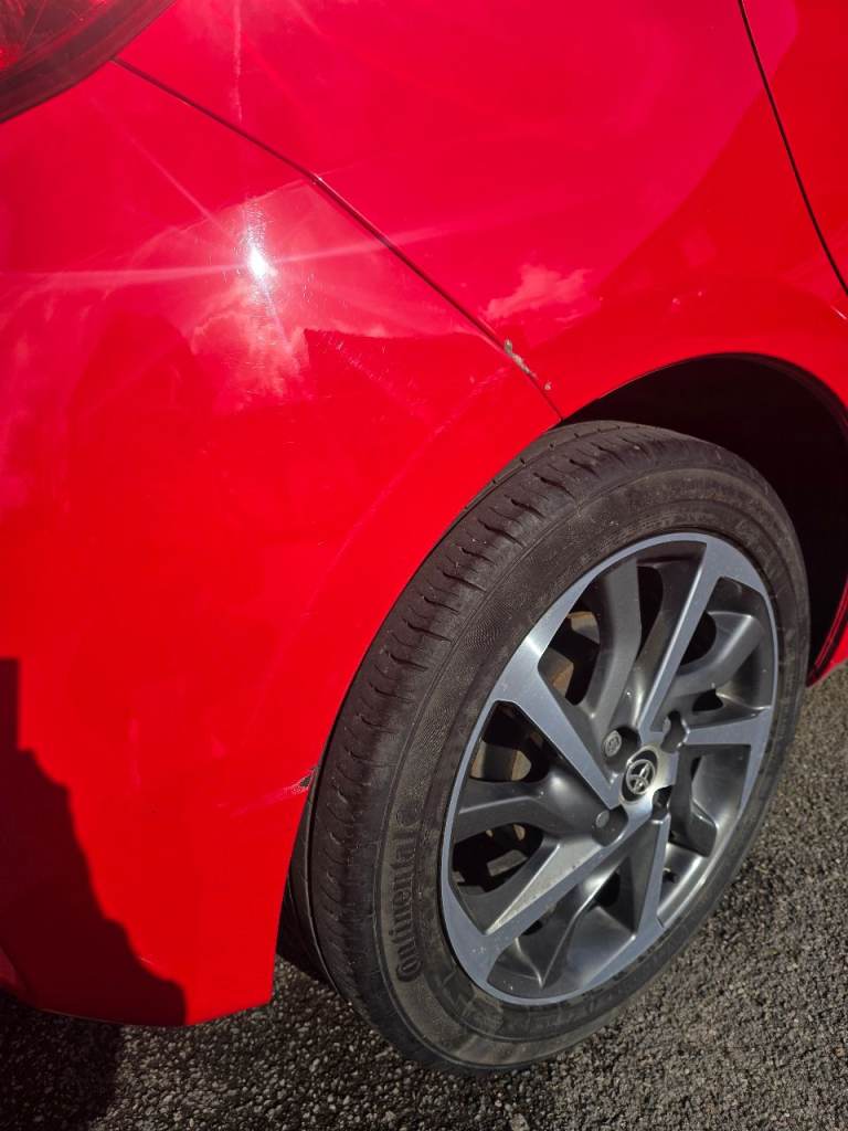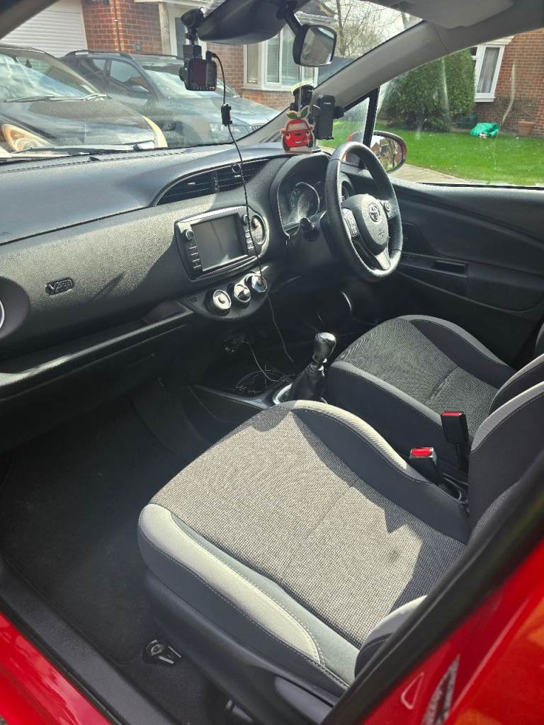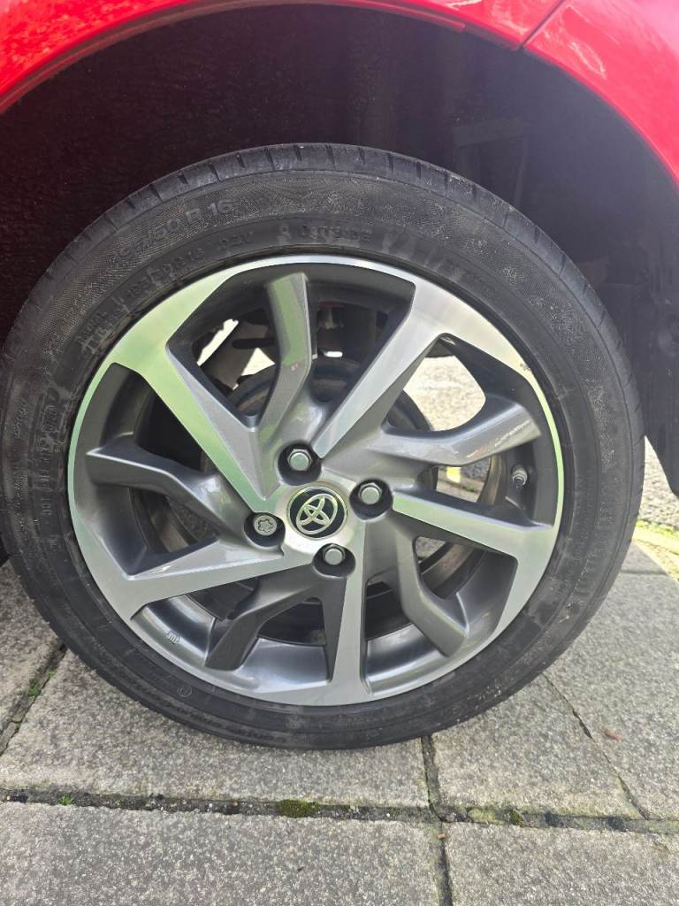 Toyota Yaris Y20 in red with bi-tone features. It is in excellent condition, with any damage or scratches shown in the images. The vehicle has cruise control, reversing camera, lane assist, auto-dipping full beam, breaking technology to alert if getting to close to the vehicle in front, auto wipers dependant on the amount of rain, DAB radio along with Bluetooth, FM and AM, alloy wheels, rubber insert for the boot to keep the carpet fresh and dirt free, rear tinted windows for privacy.