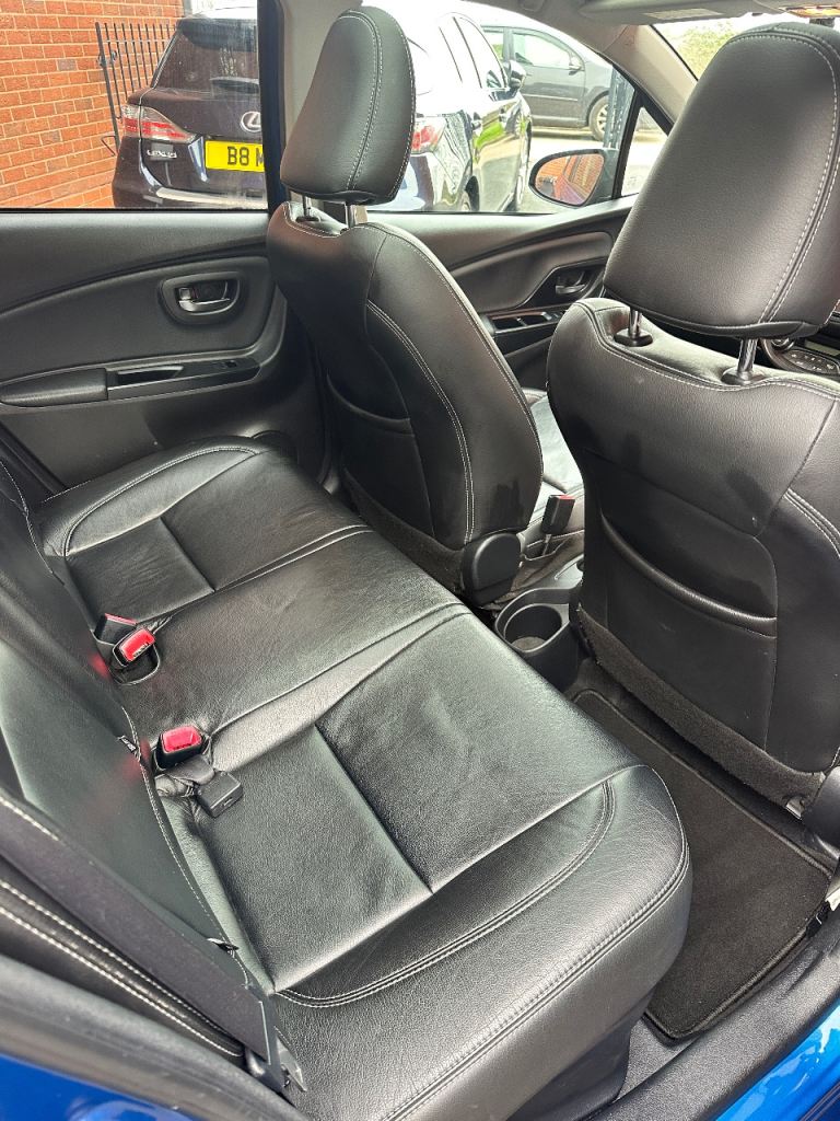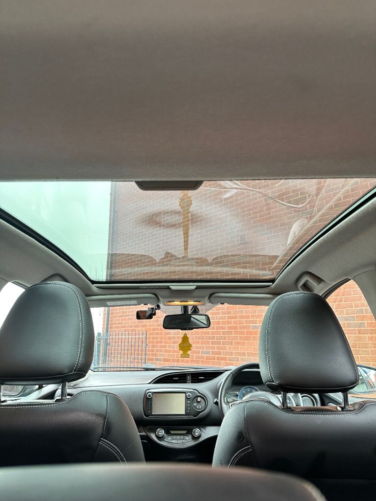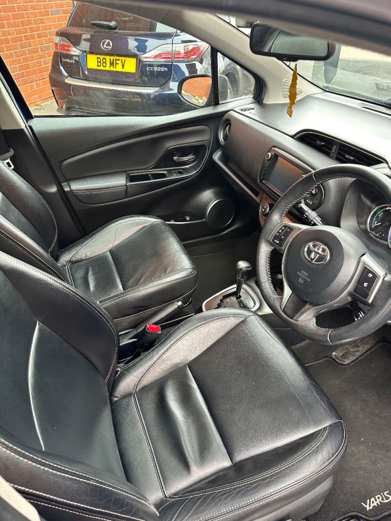 2015 Toyota Yaris Excel Hybrid top-spec trim offering a premium,well-equipped hatchback experience with features like panoramic glass roof, reversing camera, dual-zone climate control, full leather seats. 1.5L Petrol / Hybrid engine,emphasizes safety and comfort. Touch screen navigation and control, Bluetooth connectivity, keyless entry and lock. Auto lights and wipers.1.5L Hybrid: engine + electric motor with CVT gearbox superb efficiency, front&rear dashcams.16” alloy wheels, 4 good tyres, panoramic glass roof, LED daytime running lights, fog lamps, and auto-folding door mirrors.Interior comfort full leather seats, dual-zone climate control air con, DAB radio, Bluetooth connectivity, and a leather-trimmed steering wheel with controls.