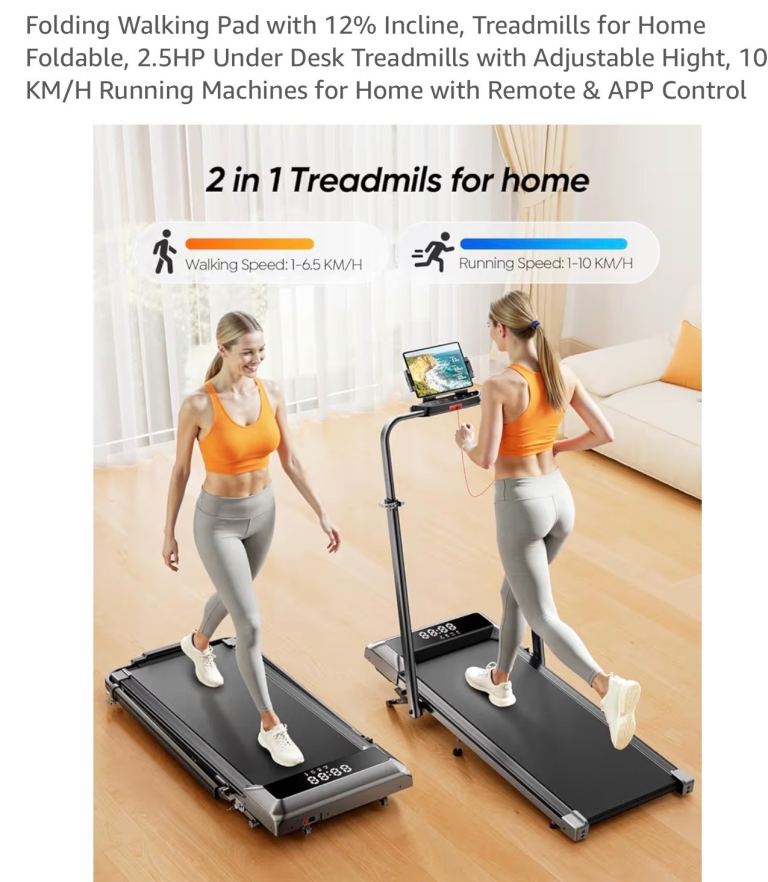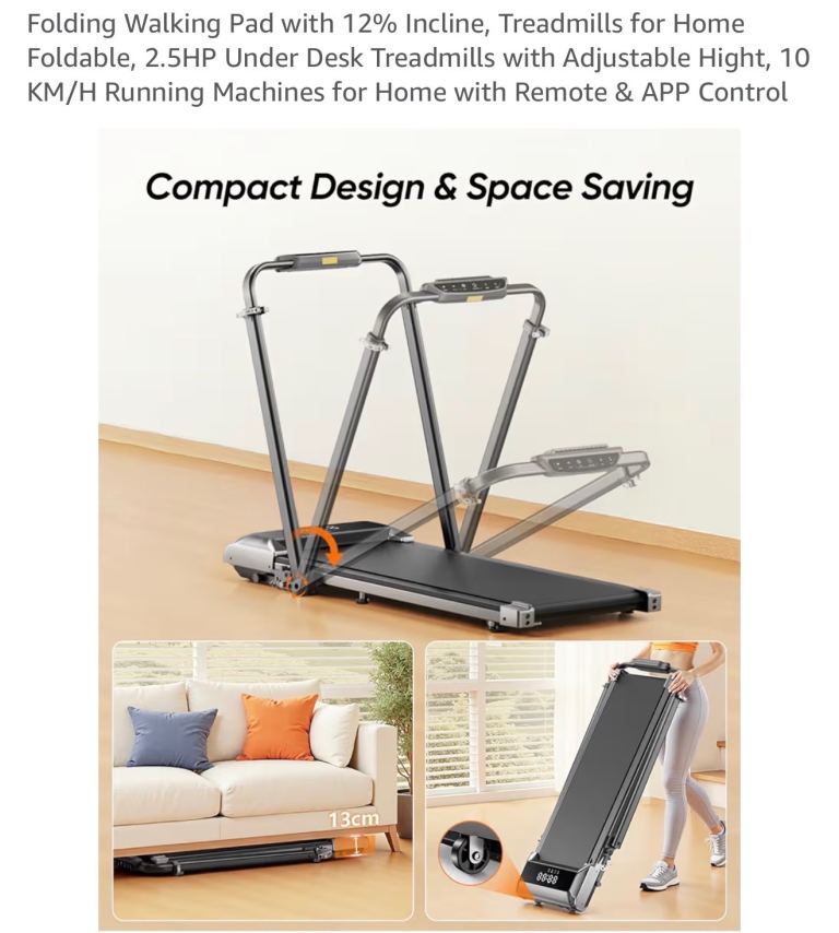 【5-in-1 Foldable Treadmills for Home & Office】This 5-in-1 foldable under desk treadmill features a speed range from 1 to 10 km/h, making it ideal for both home and office use. Designed for walking, jogging, working and incline training, this portable walking treadmill supports multitasking with ease. Suitable for all fitness levels, it allows you to stay active while working, helping you maintain a healthy work–life balance.