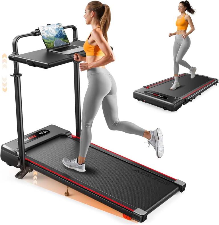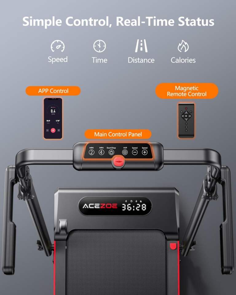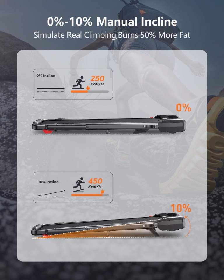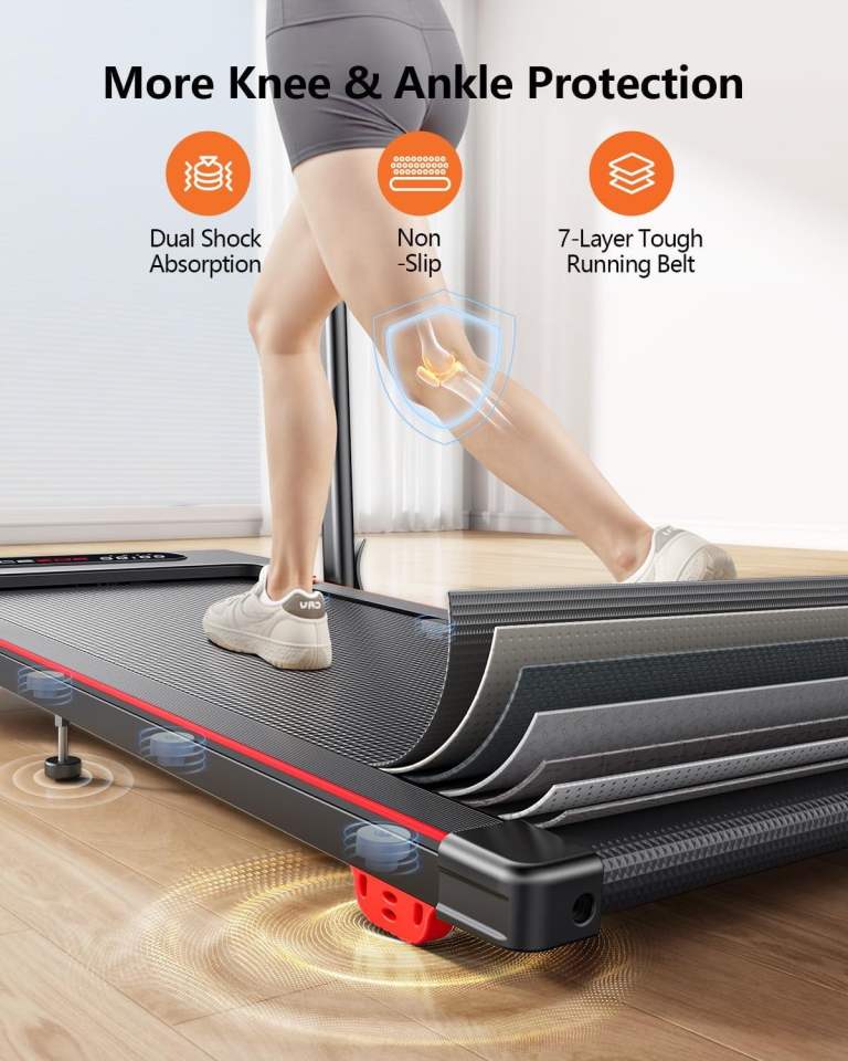 -Foldable treadmill doubles as a walking pad and a full running machine. The speed adjusts from 1–12 km/h depending on the mode. This under desk treadmill helps you stay active without compromising your productivity.