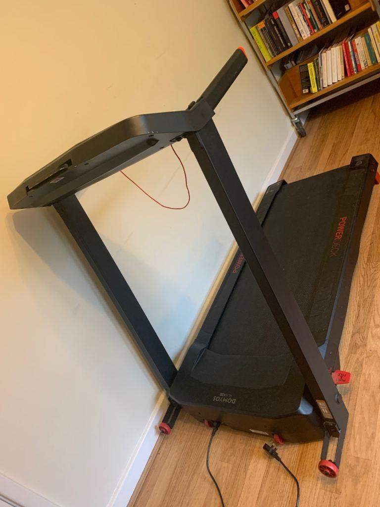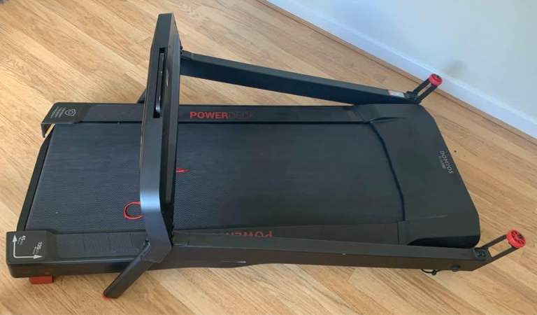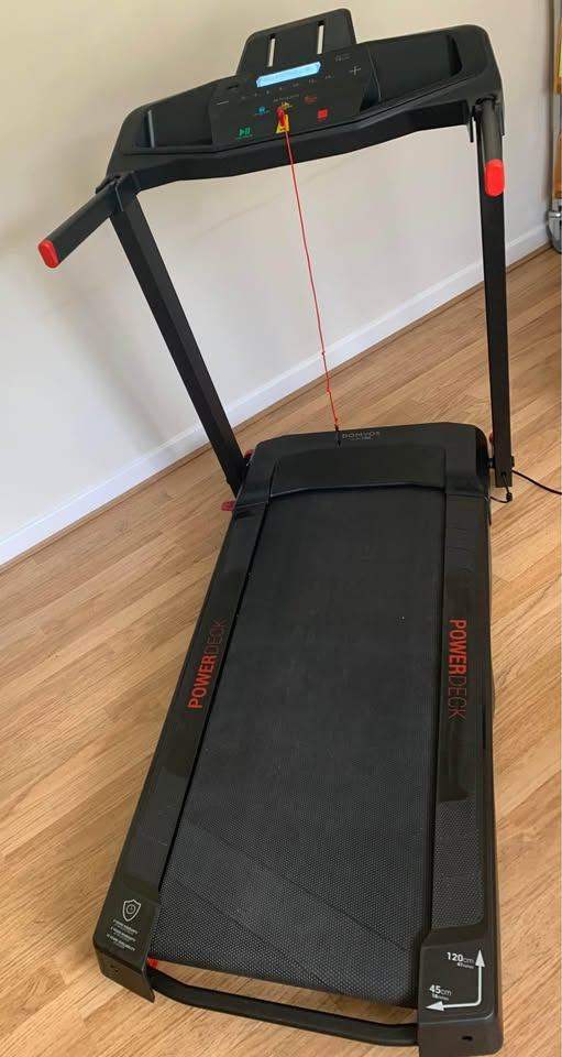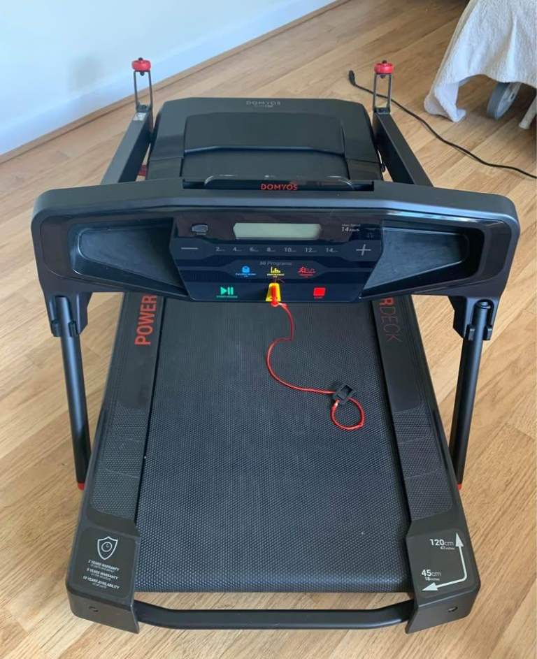 The Domyos RUN100 treadmill designed to combine high performance when in use and easy storage when not in use.
